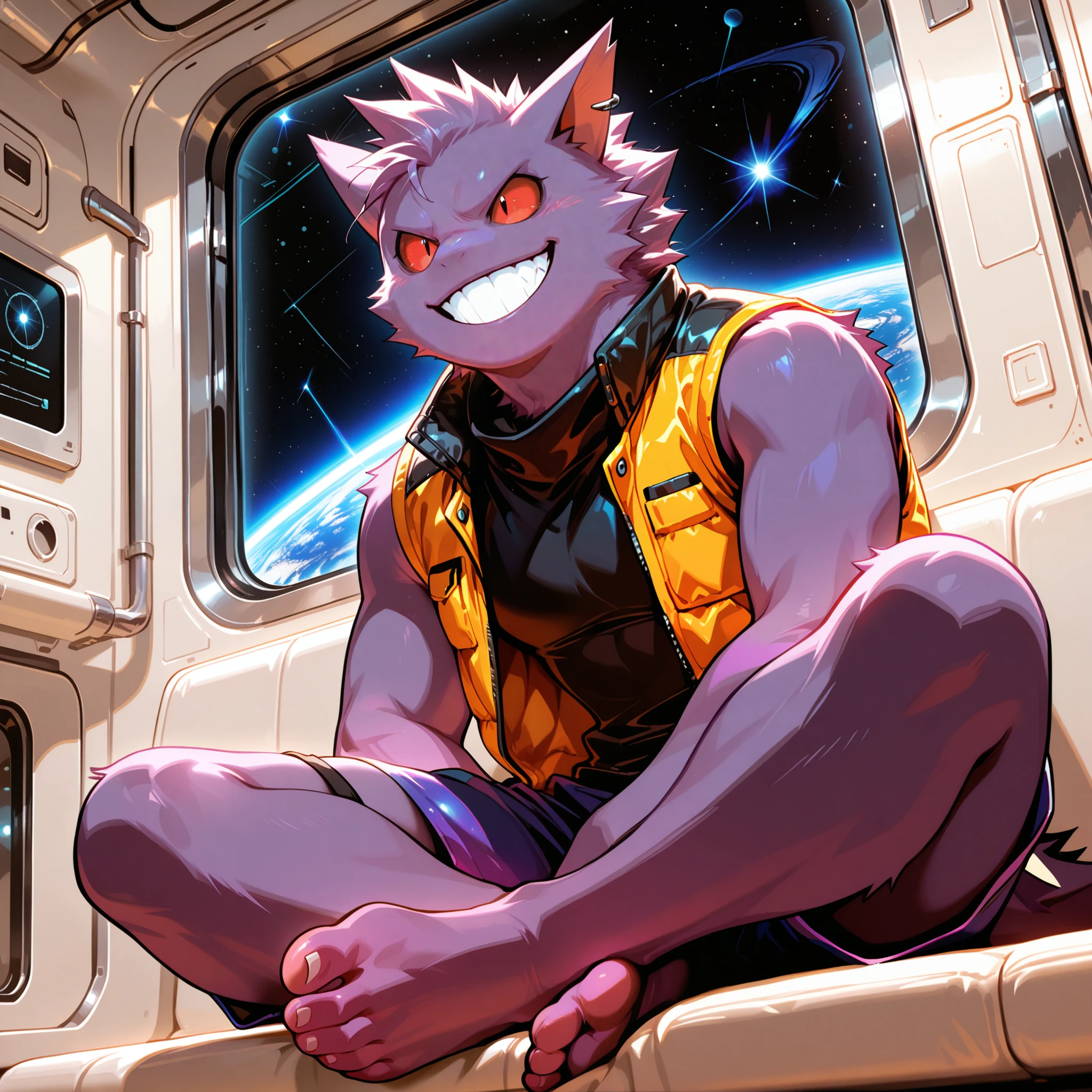 g3ngar, red eyes, light purple fur, pointy ear, sharp image, white teeth, sharp image, male, full body, furry male,