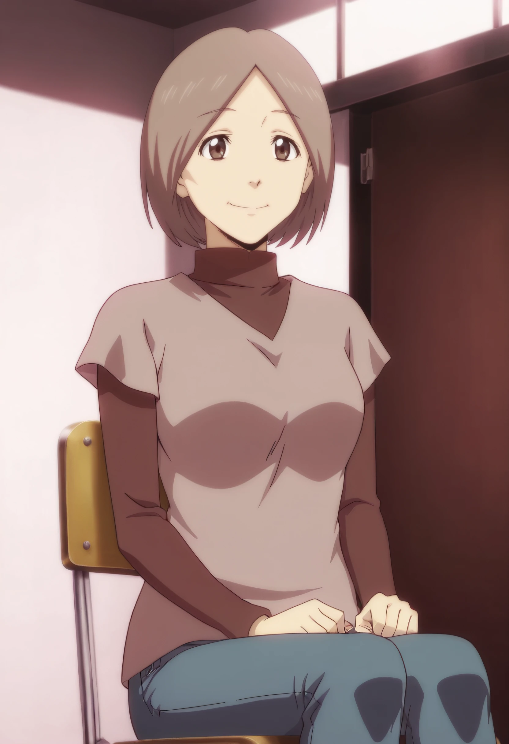 MHHKyoichiMother, short hair, brown eyes, brown hair, old, old woman,