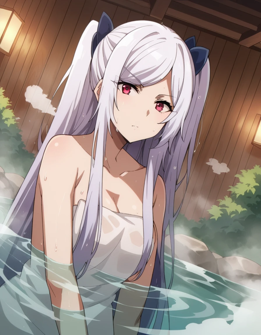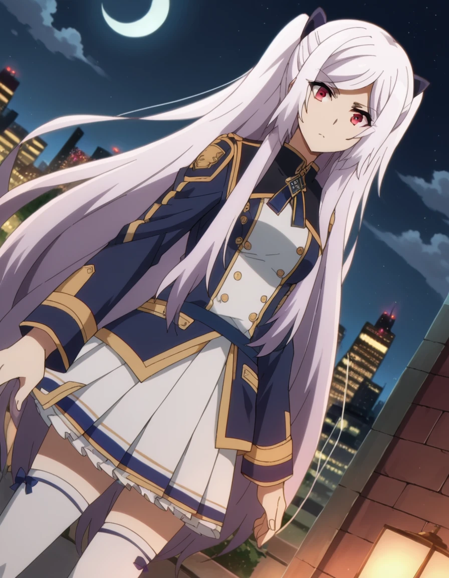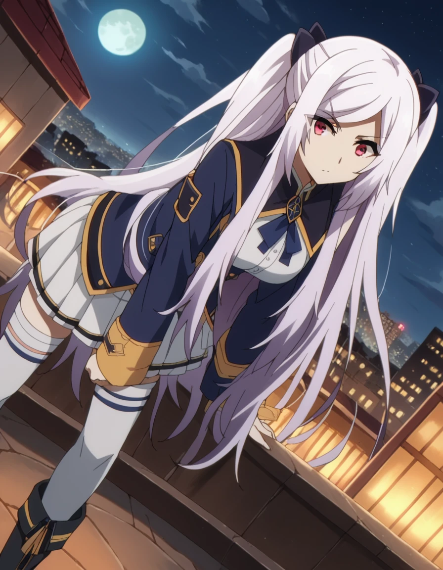 alexia midgar, long hair, very long hair, hair ribbon, white hair, red eyes, sidelocks, ribbon,