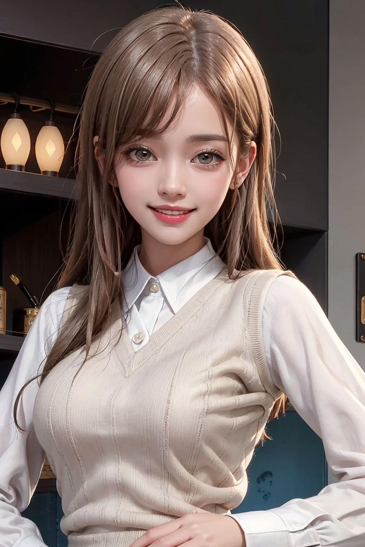 tendohyt, 1girl, solo, brown hair, brown eyes, large breasts, long hair