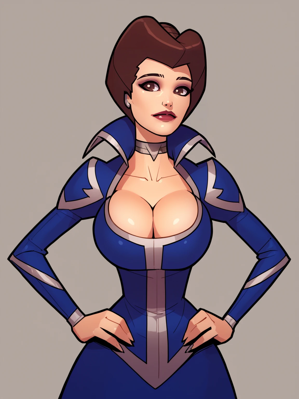 Basic prompts : 1girl, ladyjessica, makeup, lips, large breasts, choker, dress, bridal gauntlets, puffy sleeves, thigh boots, thighhighs