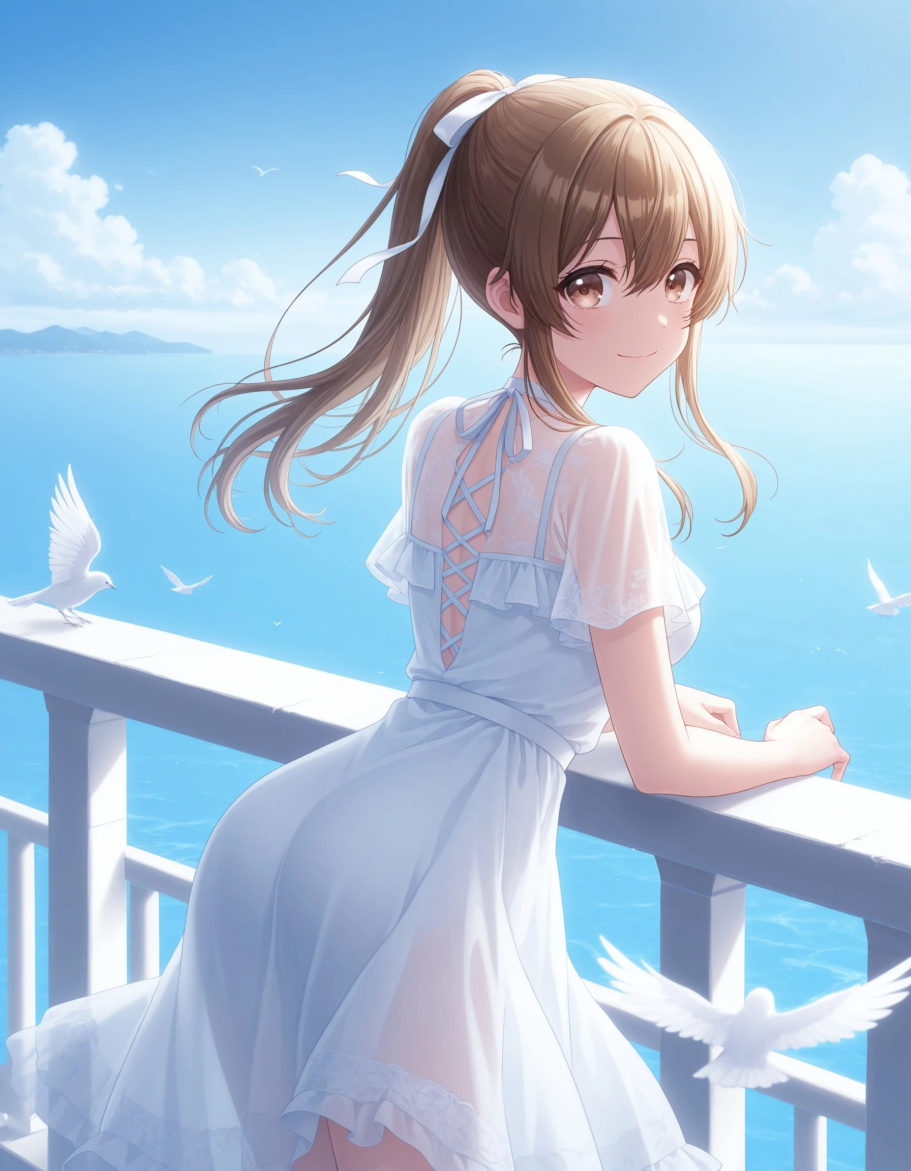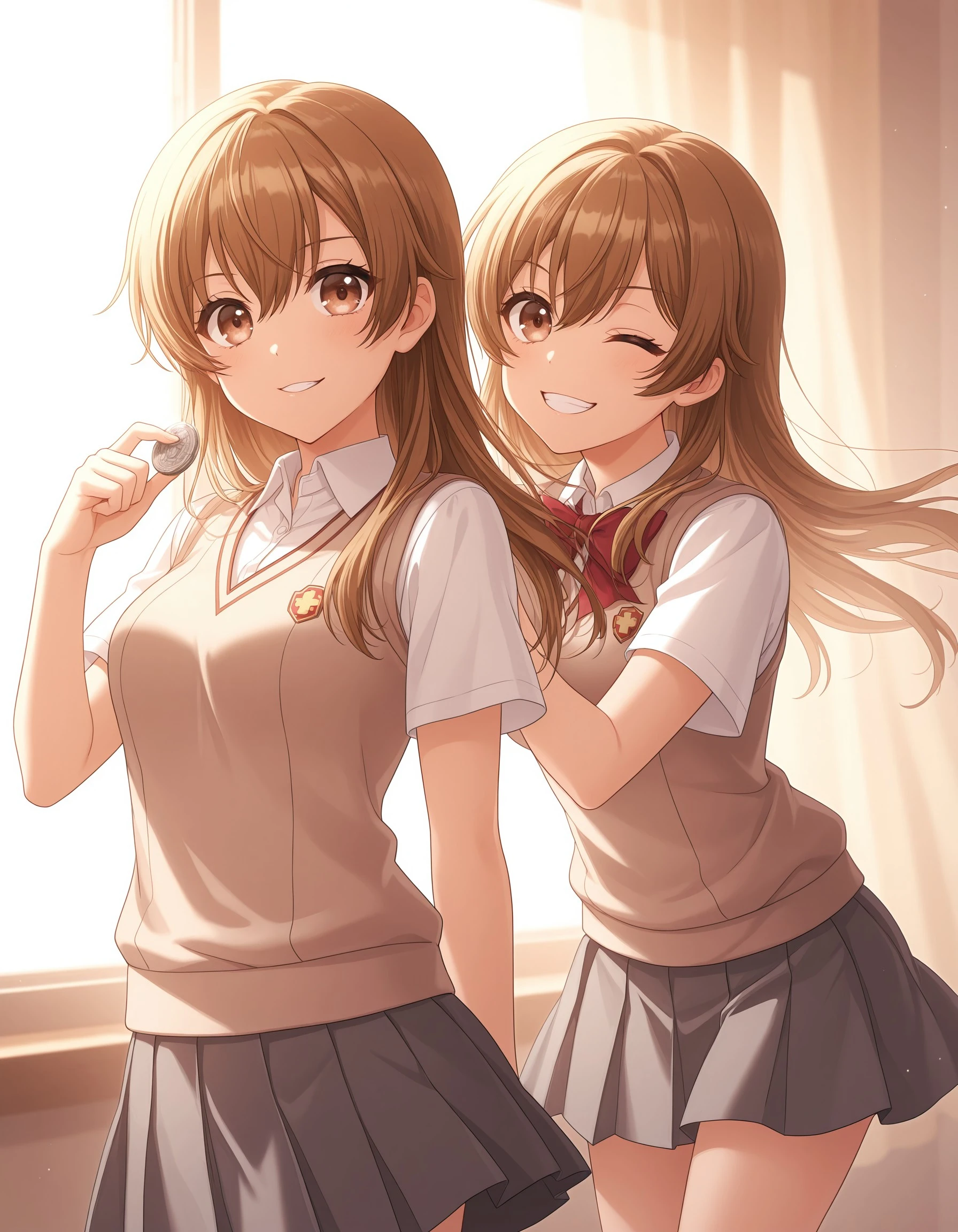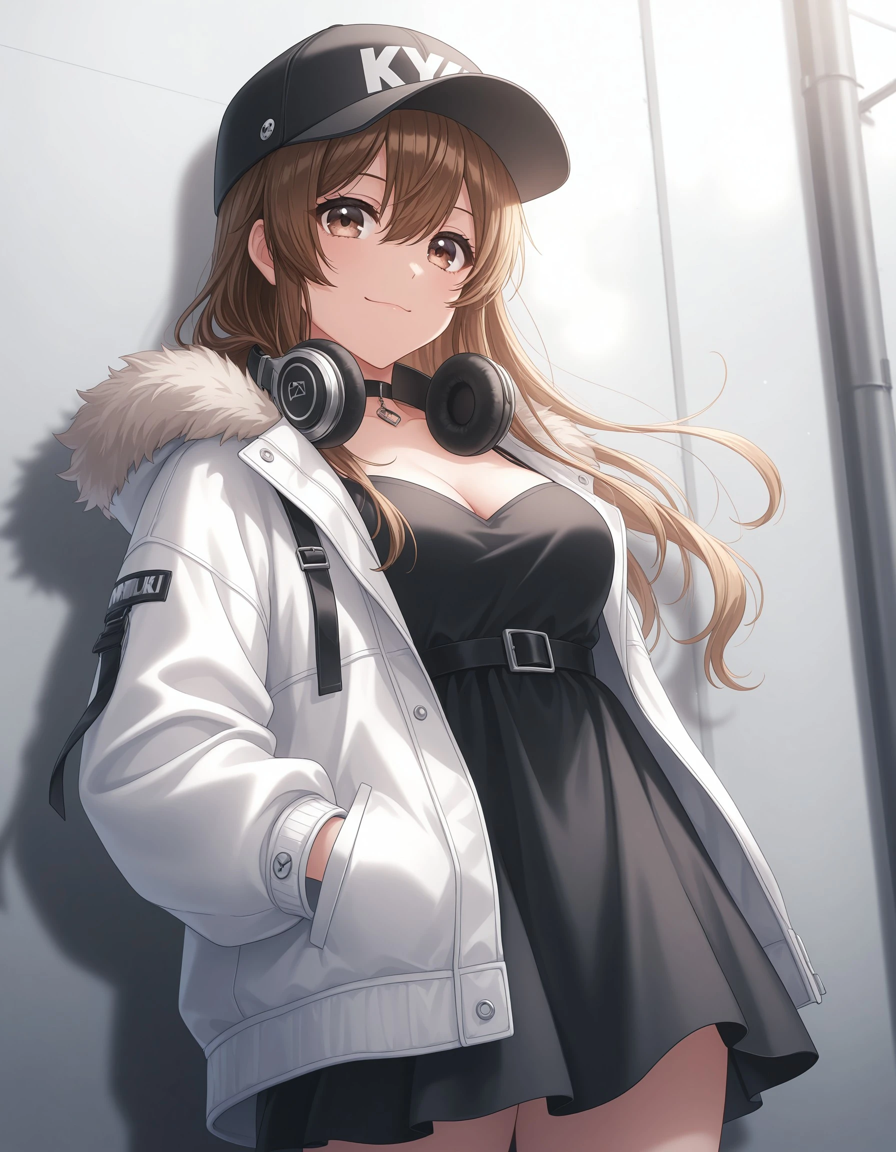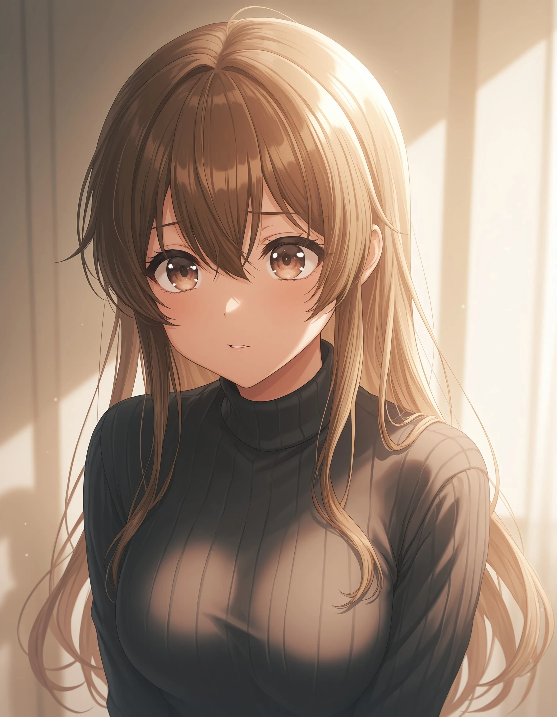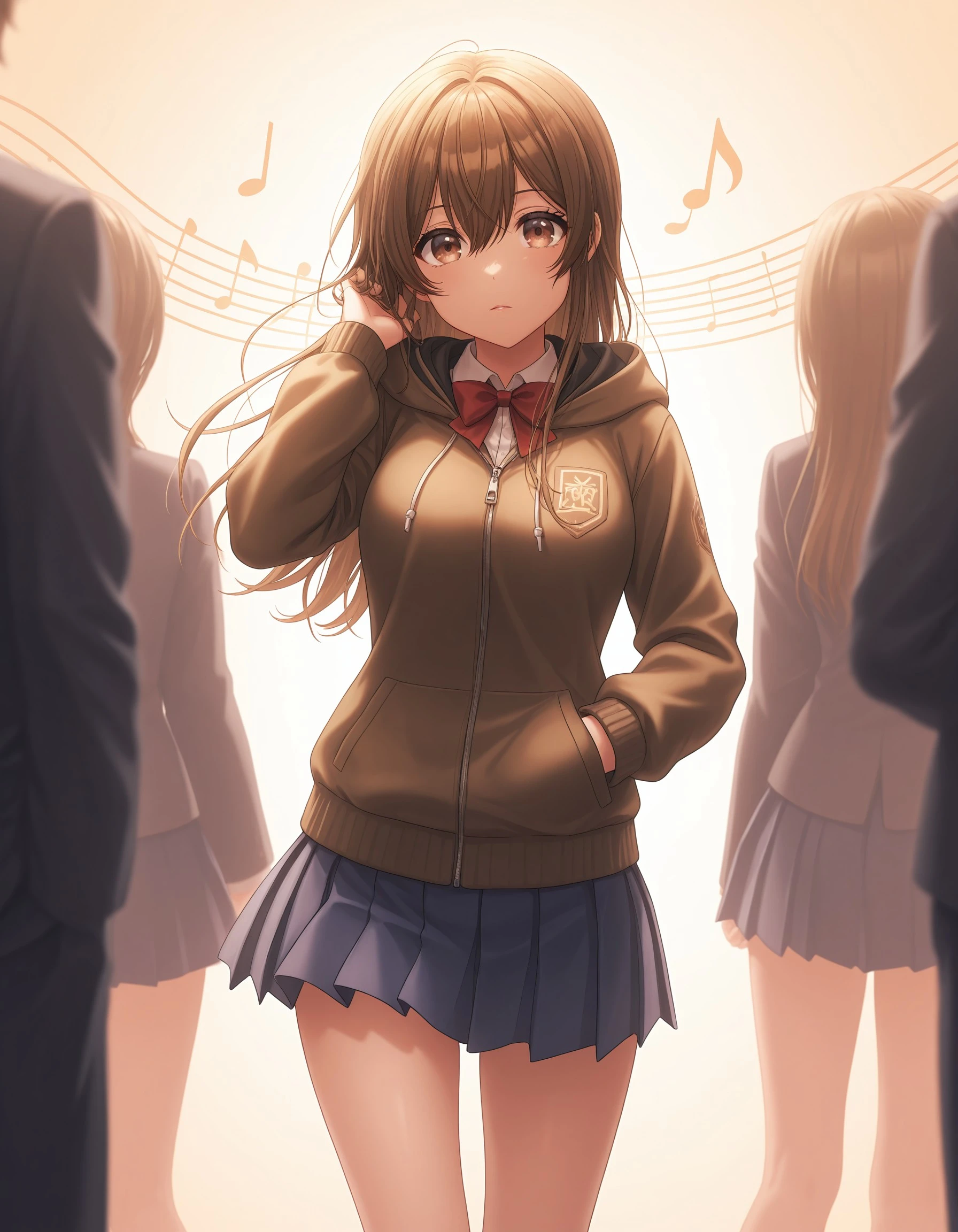 kkymt, long hair, brown hair, brown eyes, hair between eyes, medium breasts