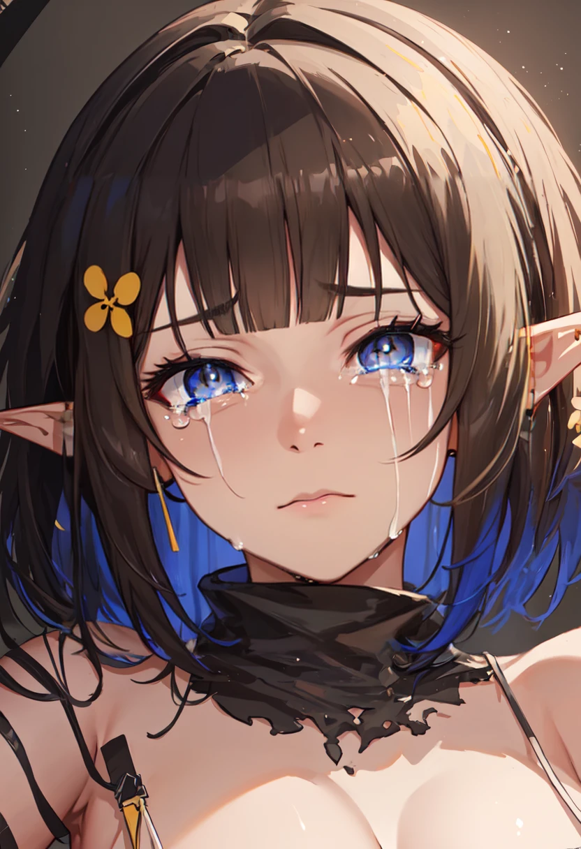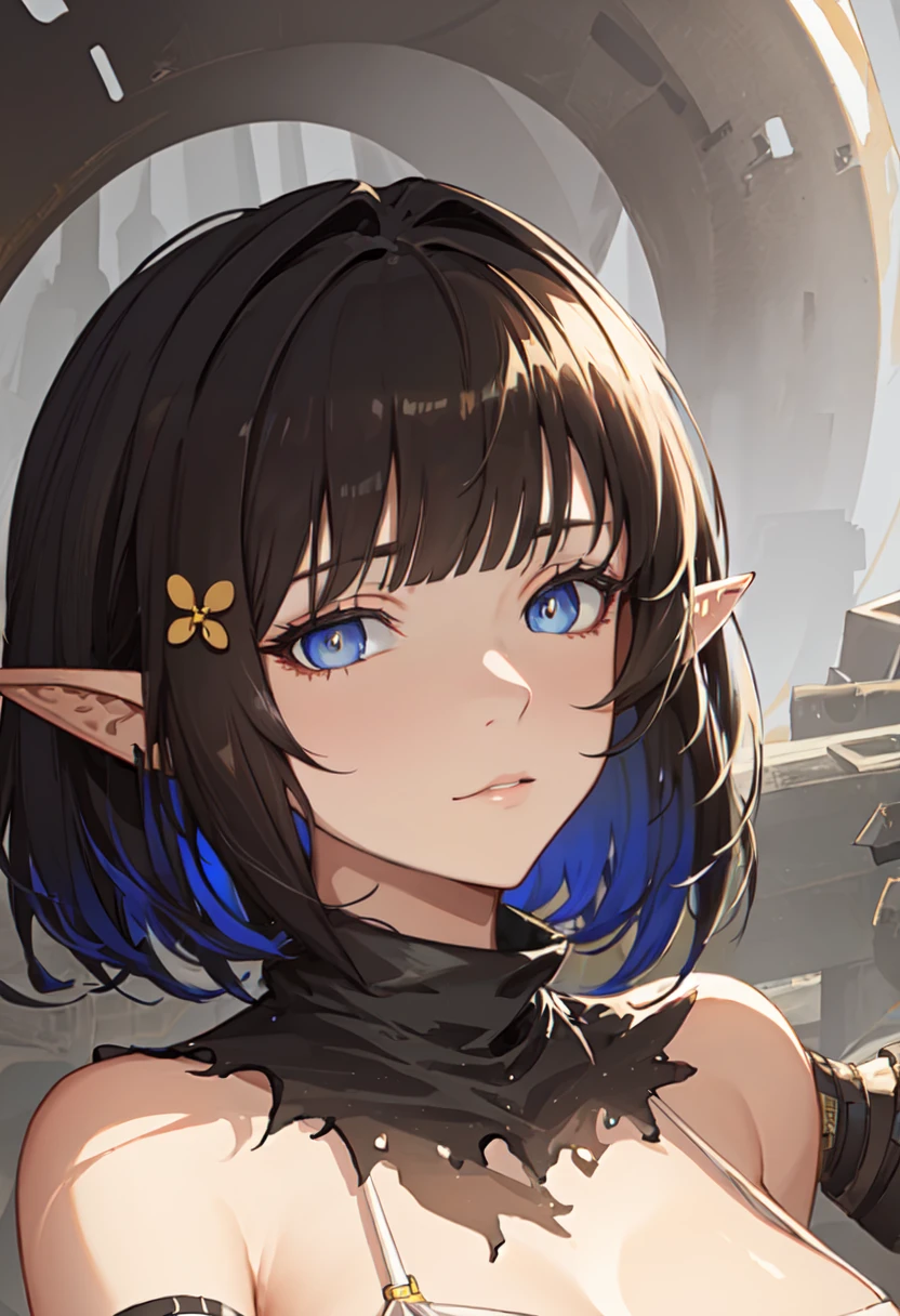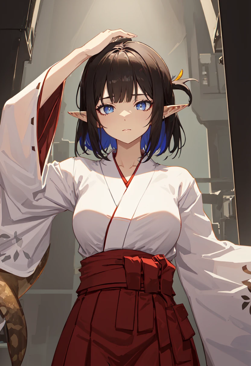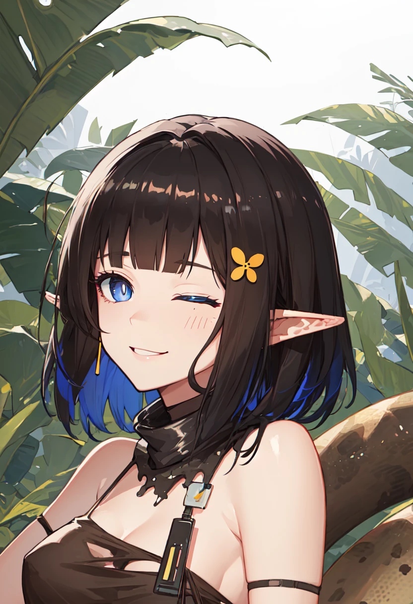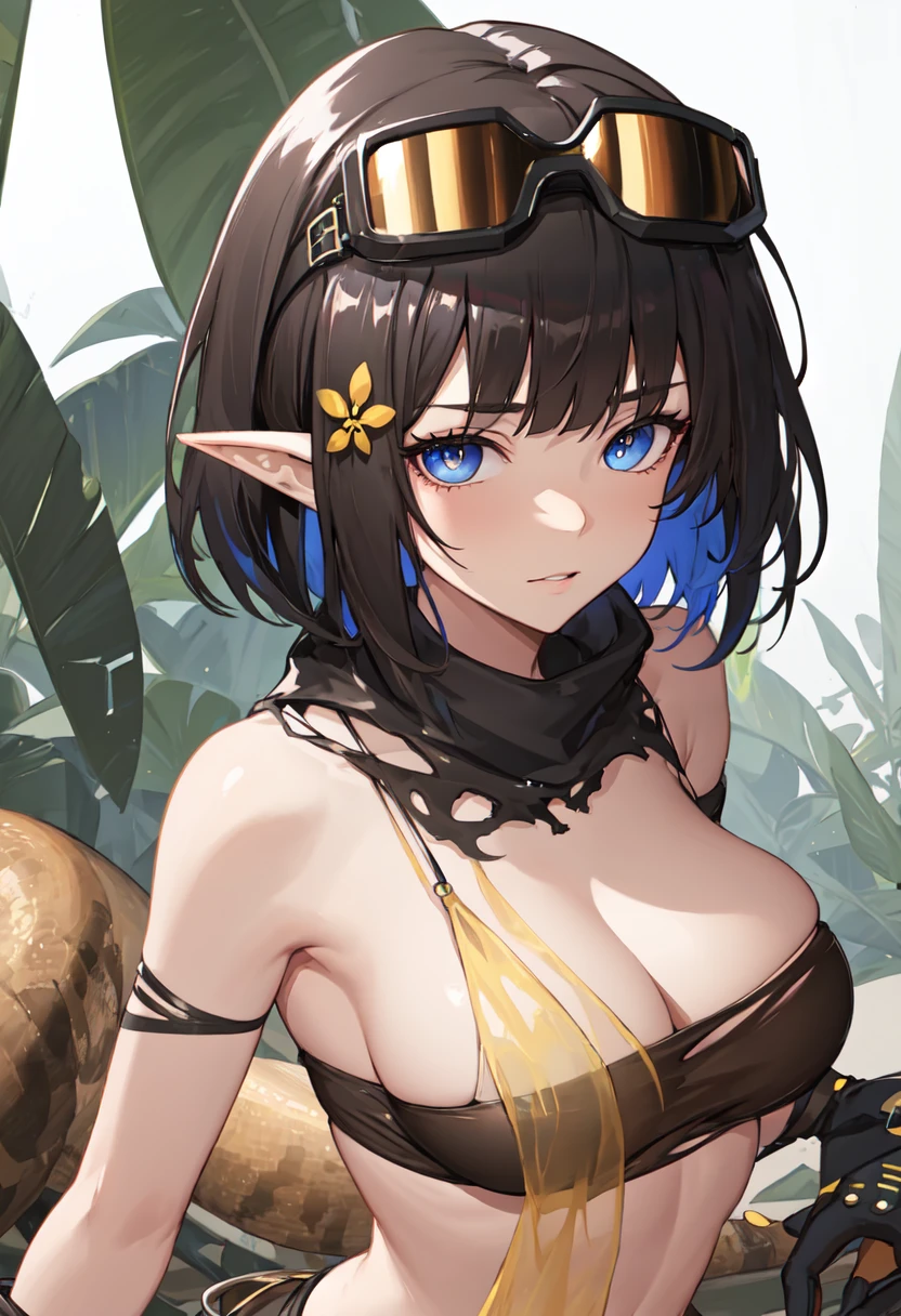 - The pruned character tags are black hair, pointy ears, short hair, breasts, tail, snake tail, blue eyes, large breasts, multicolored hair, blue hair, hair ornament. You can add them into prompts when core features (e.g. hair color) of character is not so stable.