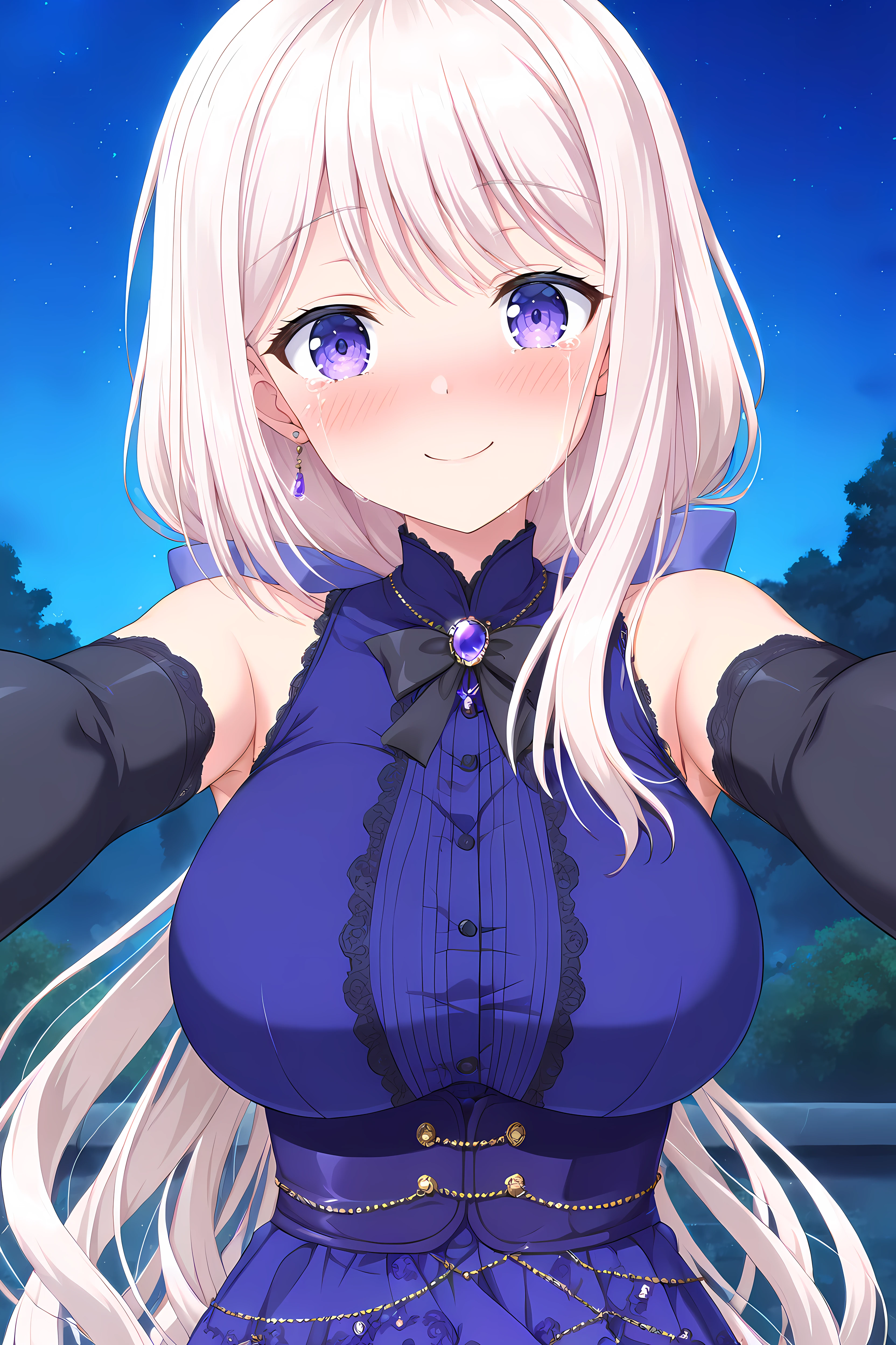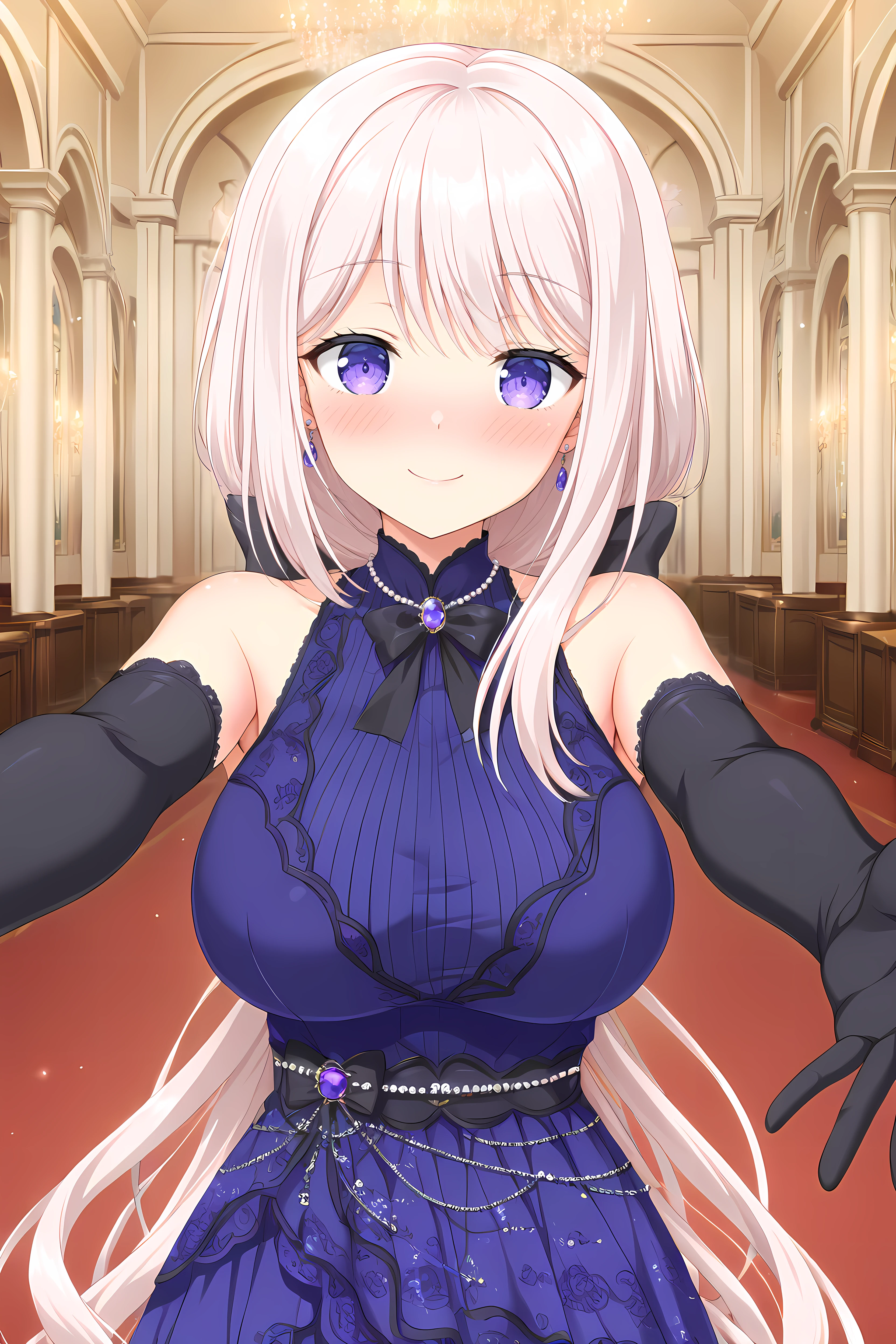 Base: Atena,Purple eyes,White hair,Long hair,bangs,very long hair,large breasts