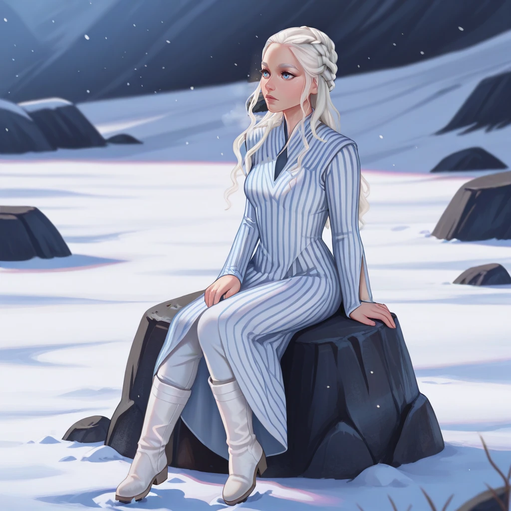 DAENERYS, 1girl, solo, white hair, long hair, blue eyes
