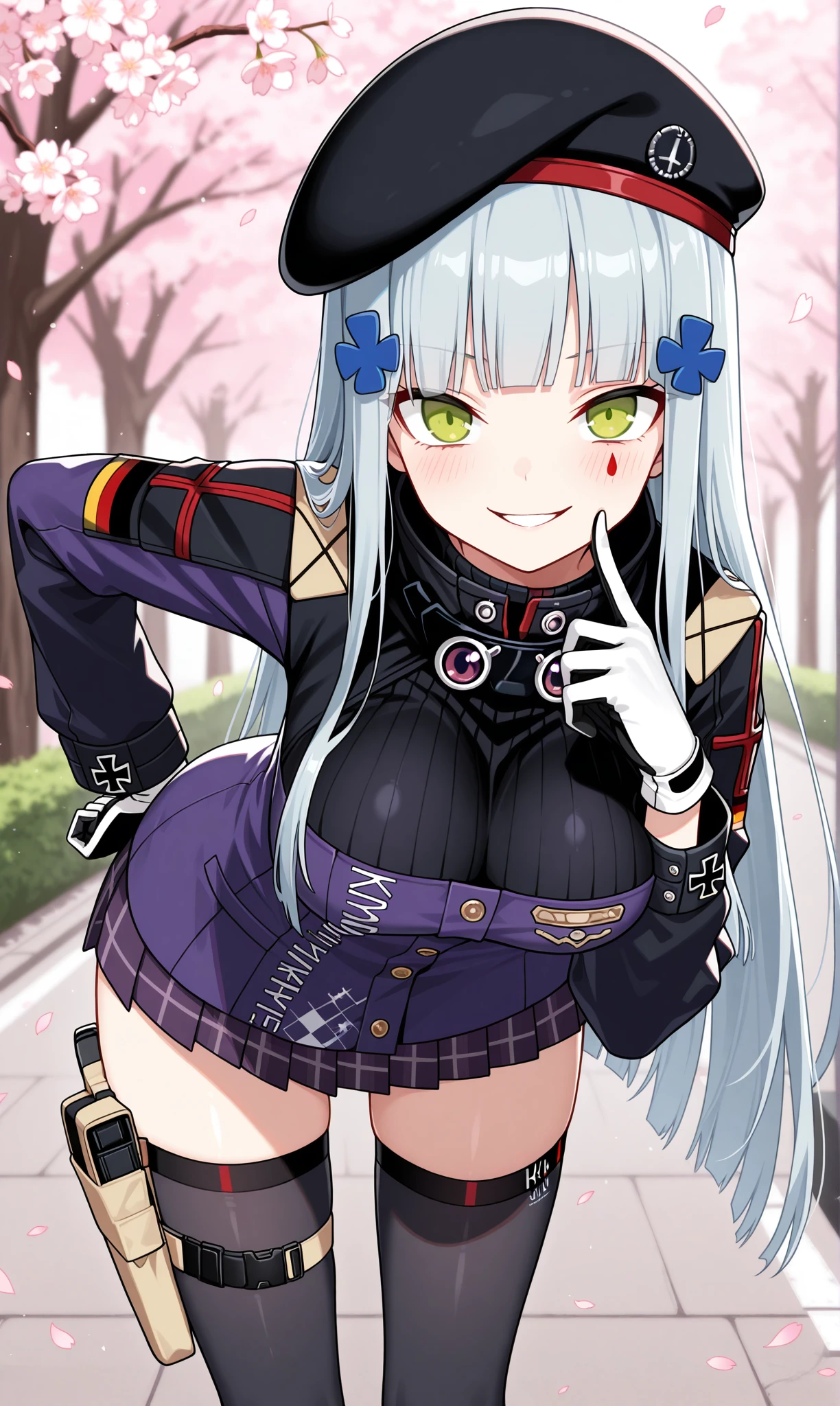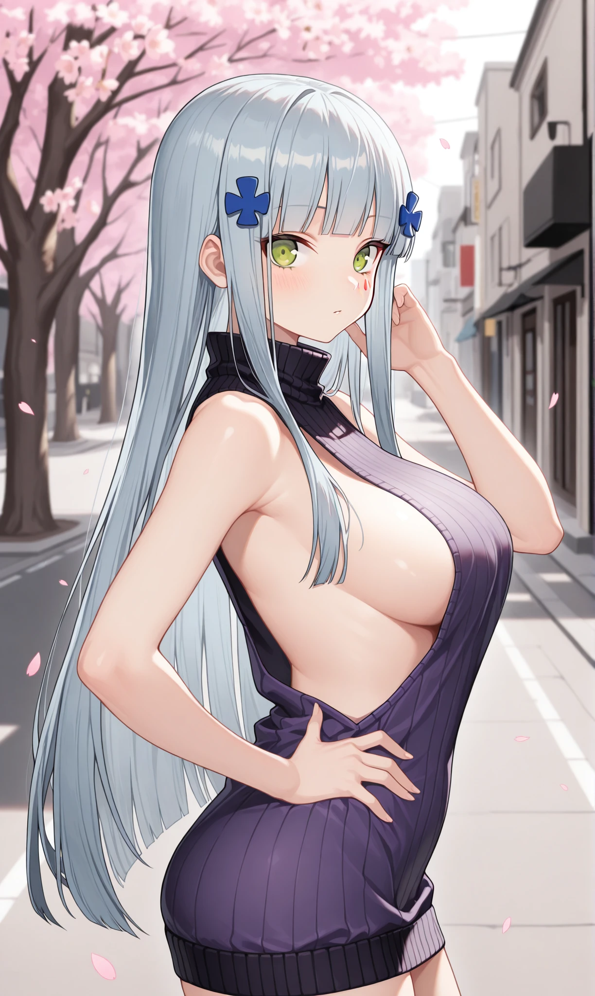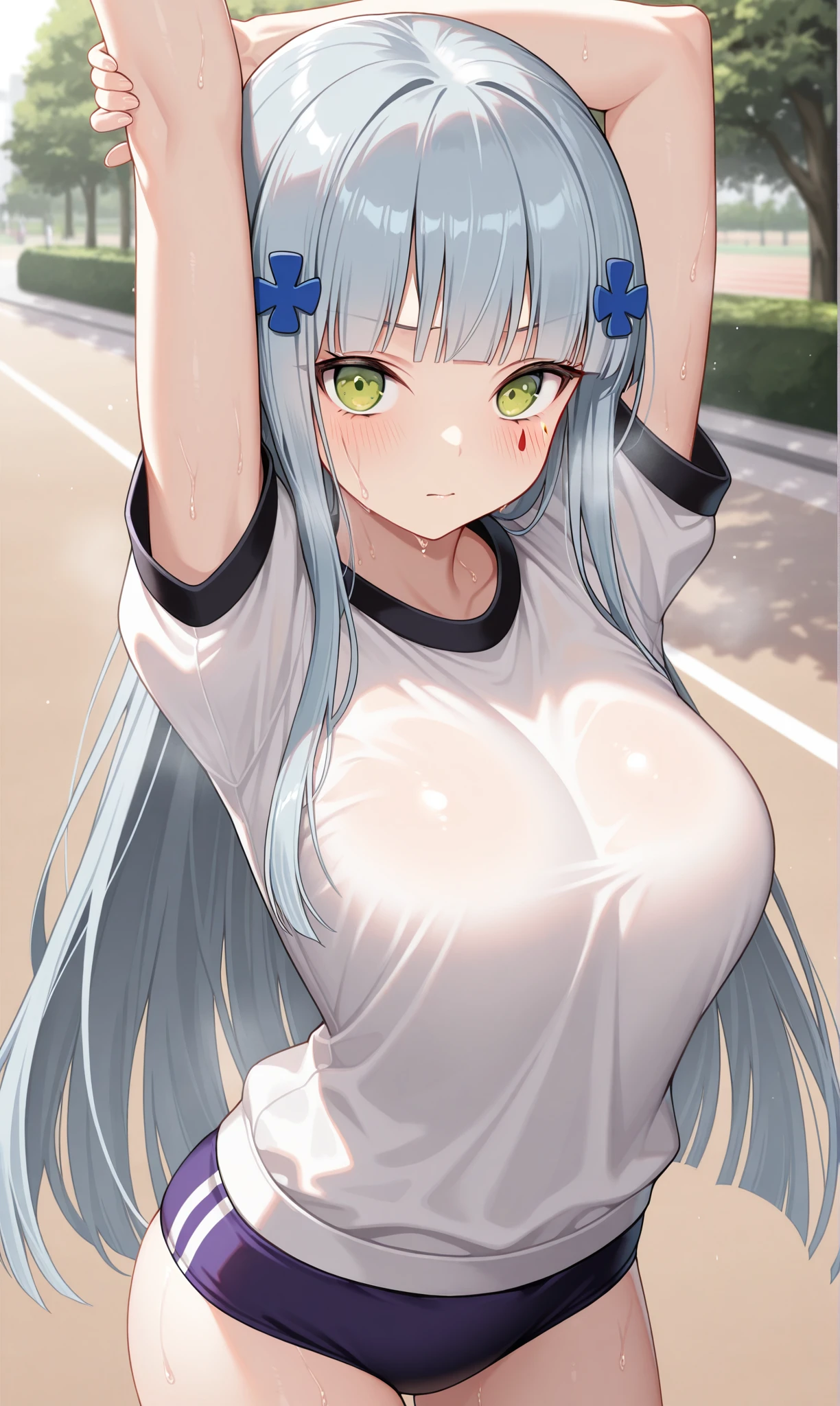 hk416 \(girls' frontline\), blunt bangs, grey hair, very long hair, green eyes, hair ornament, facial mark ๐ข๐๐๐ณ๐ถ๐: