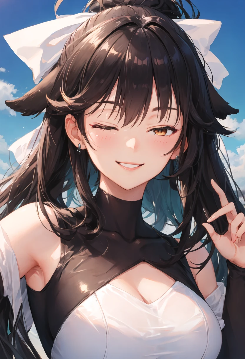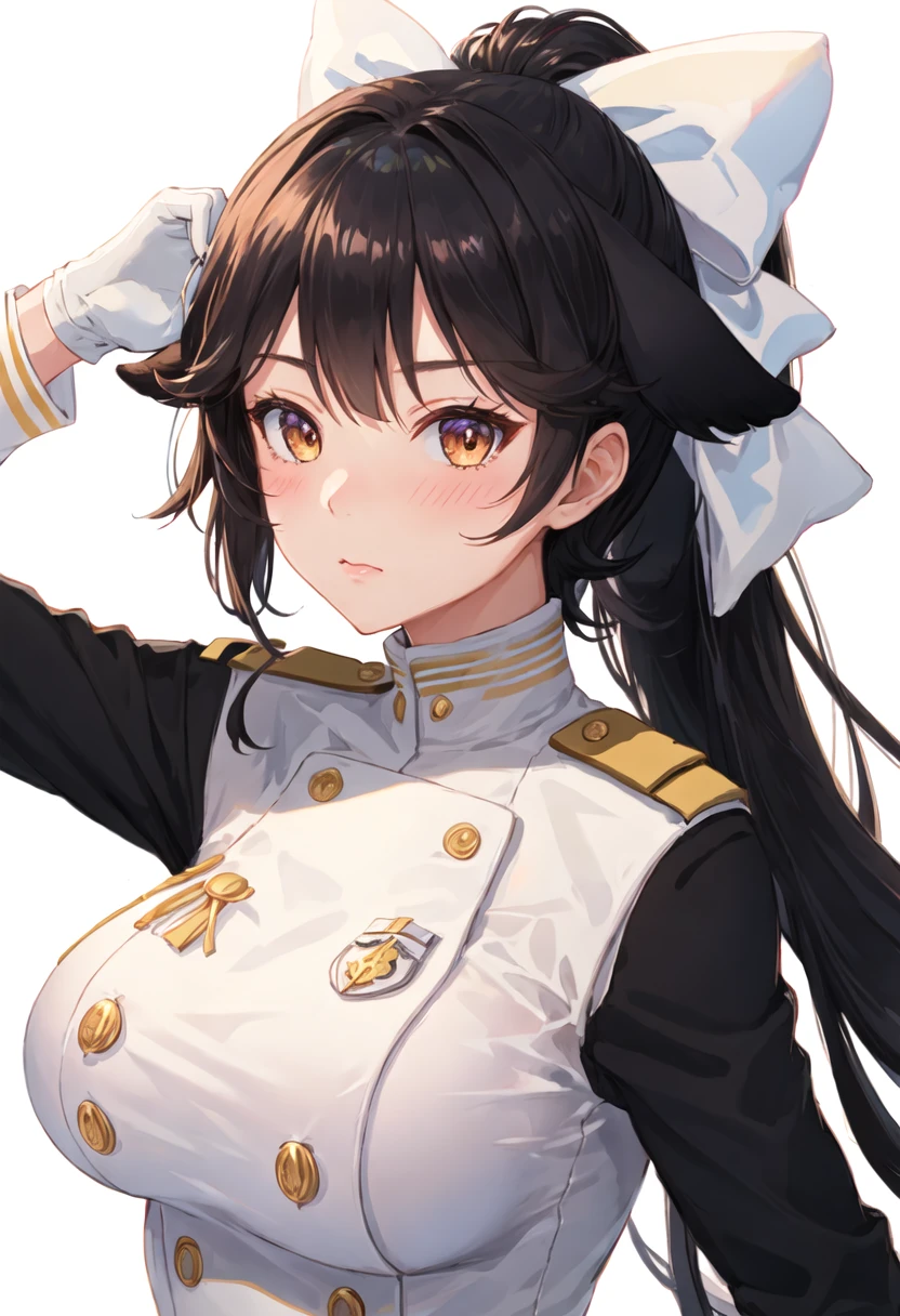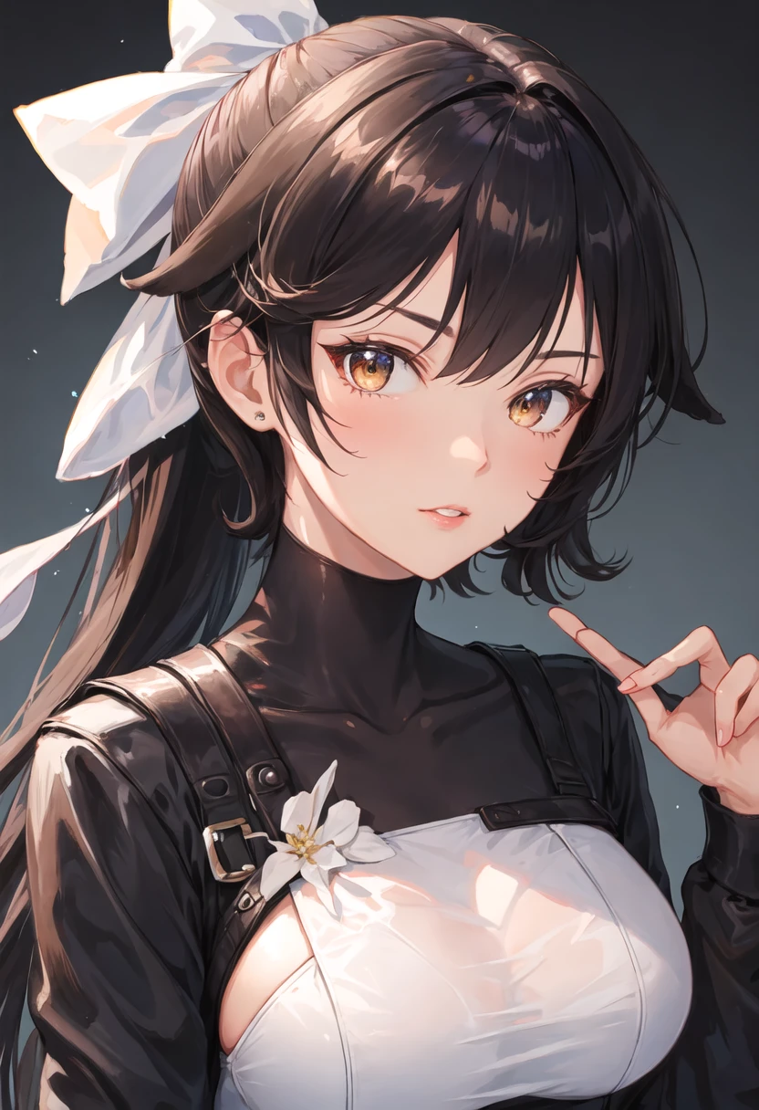 - The pruned character tags are long_hair, black_hair, breasts, large_breasts, bow, ponytail, hair_bow, white_bow, bangs, very_long_hair, brown_eyes, yellow_eyes. You can add them into prompts when core features (e.g. hair color) of character is not so stable.