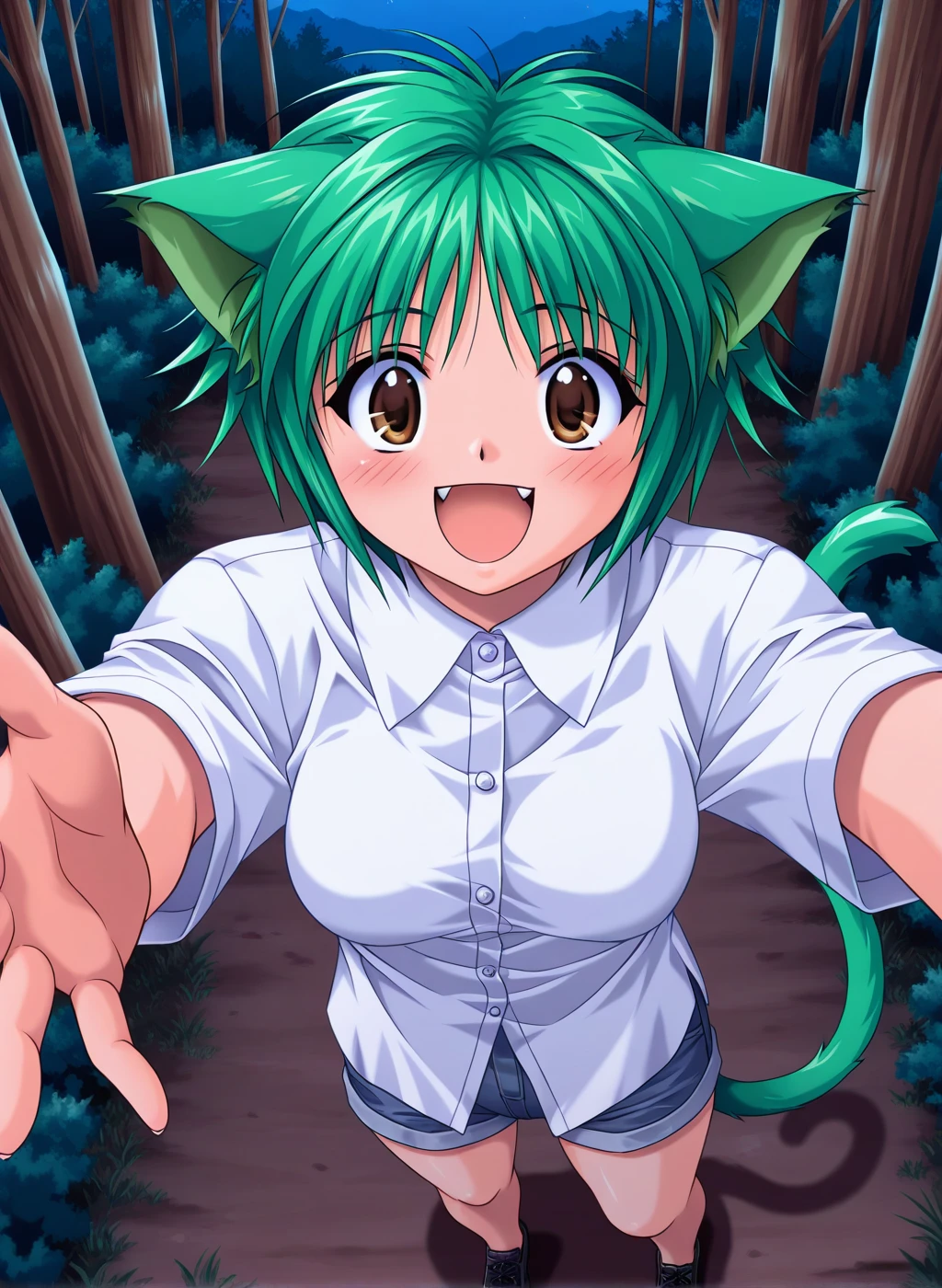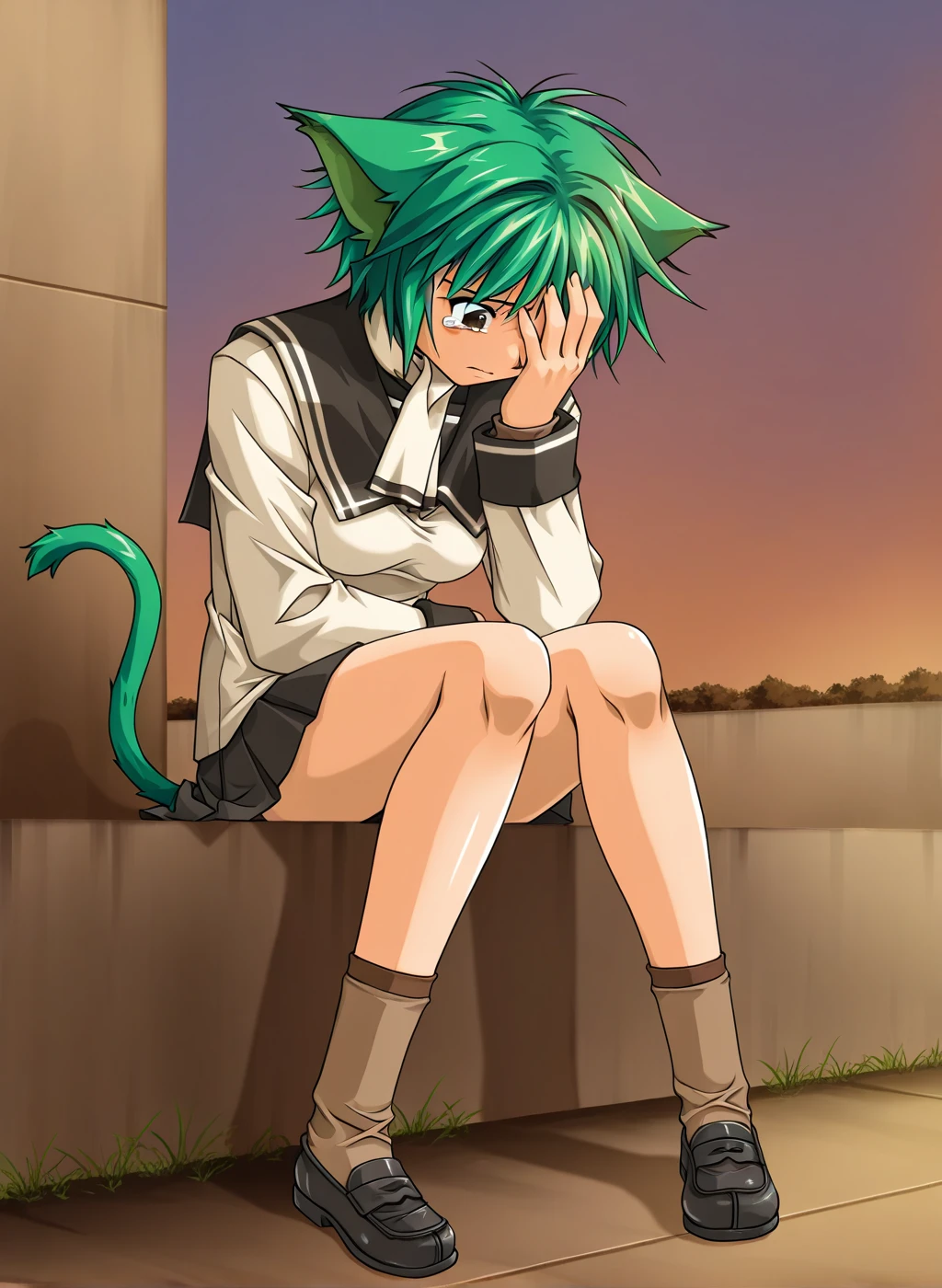 noish stagra, cat ears, cat tail, brown eyes,