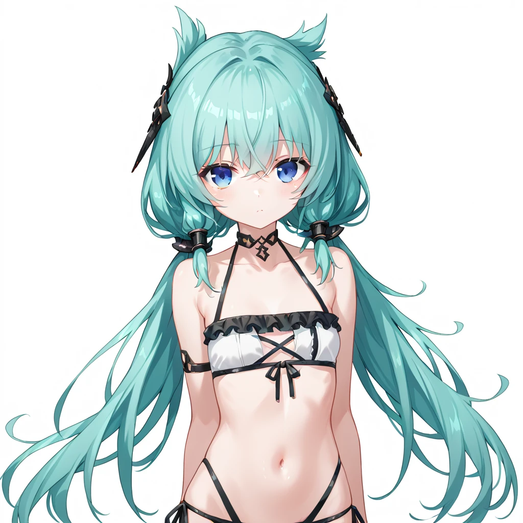 osiris the innocence, aqua hair, blue eyes, low twintails, open jacket________Version Illustrious v1.0________