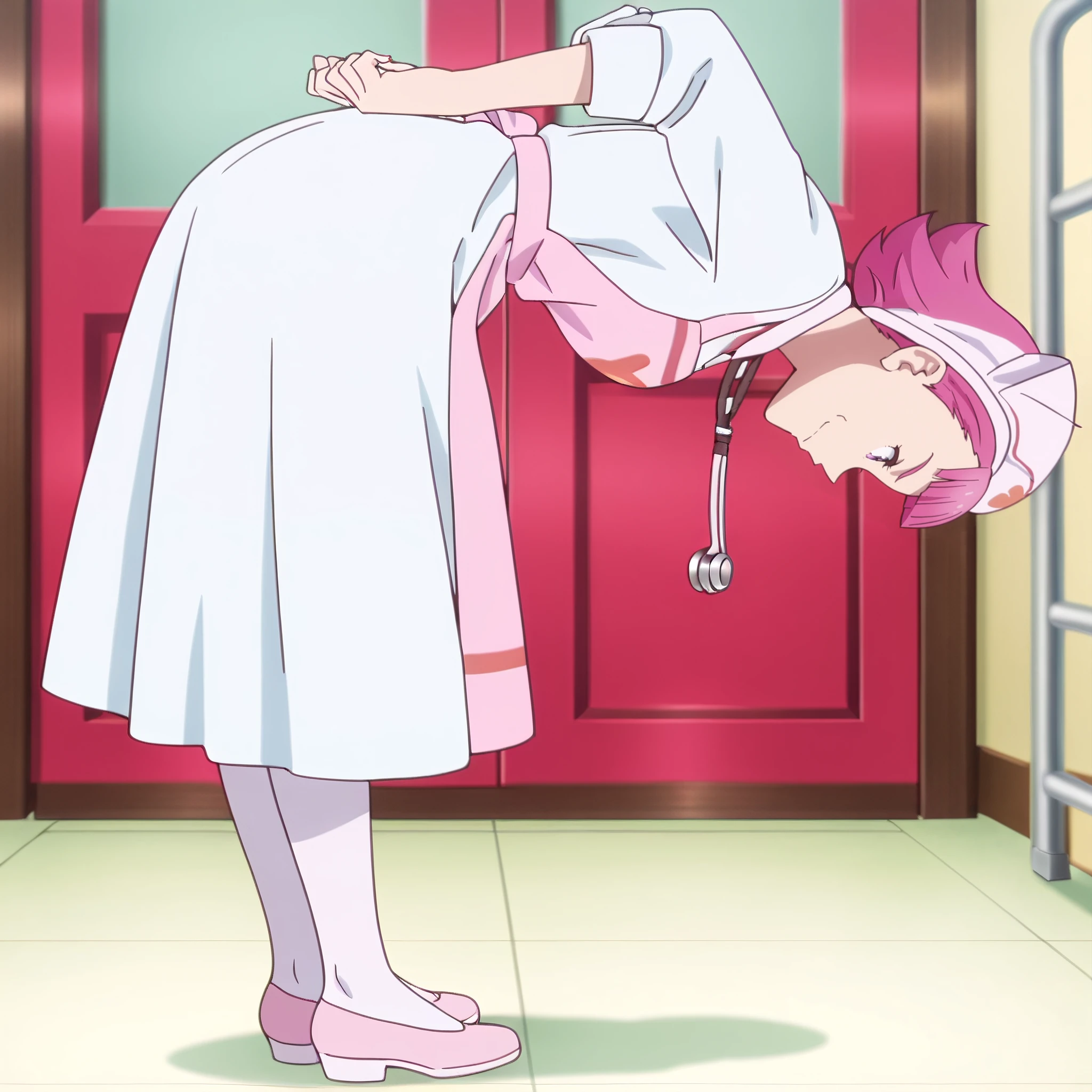 ARTMother, pink hair, short hair, purple eyes, bangs, blunt bangs,