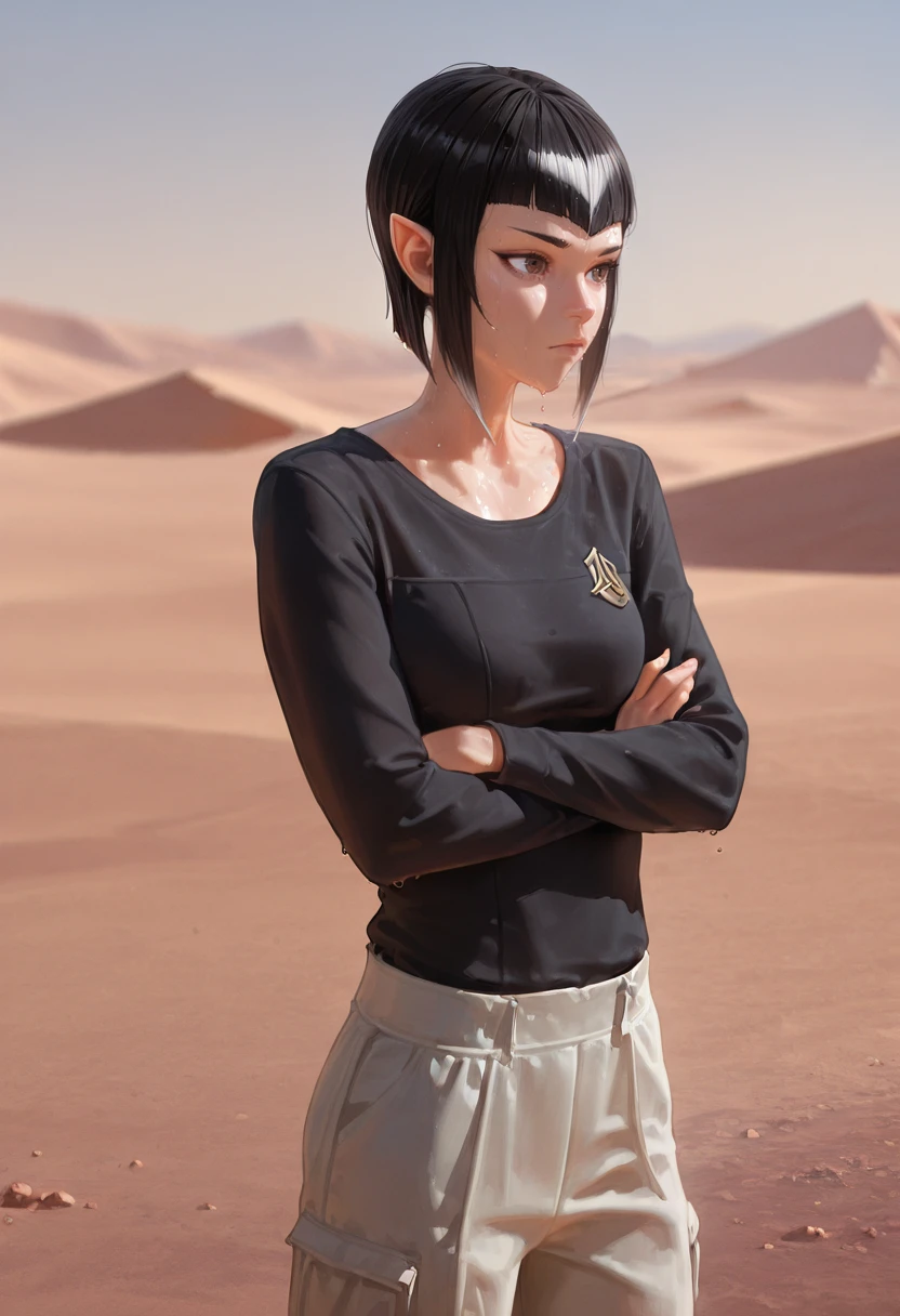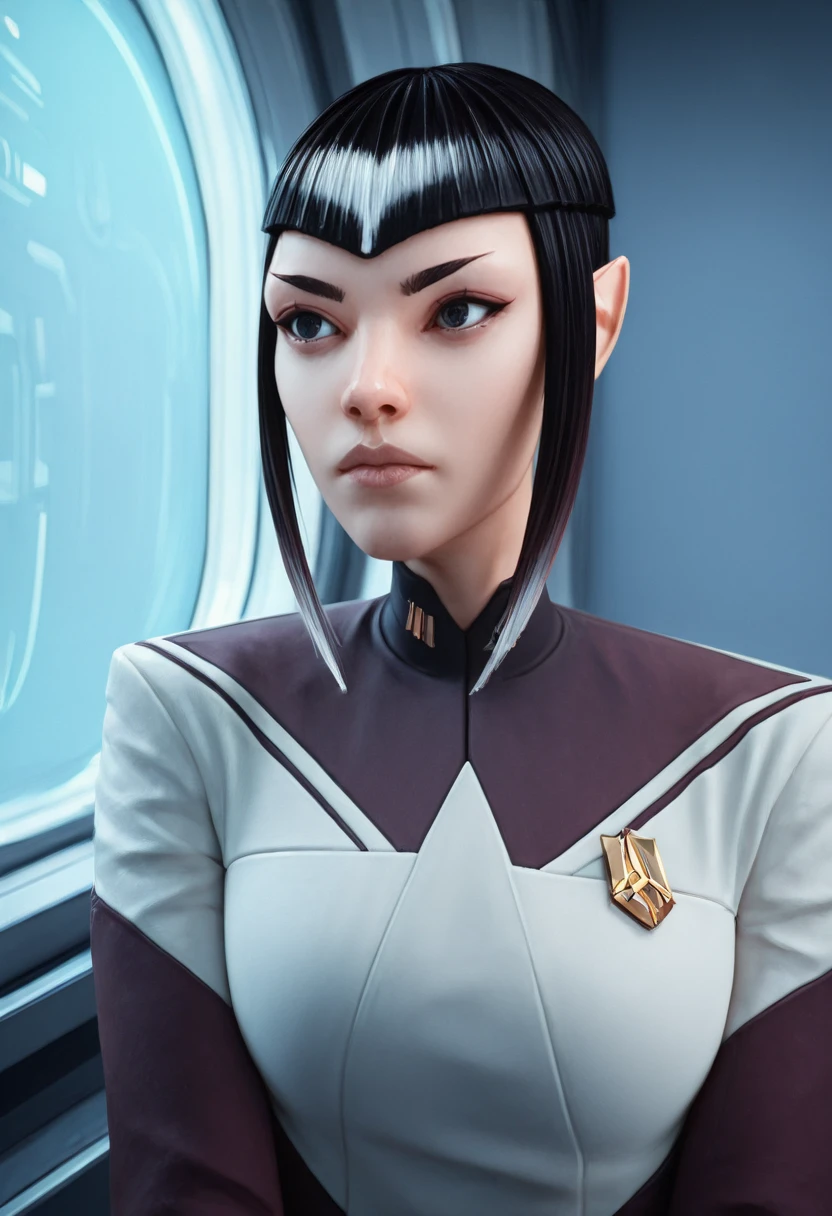 Majel, 1girl, black hair, short hair, sidelocks, grey eyes