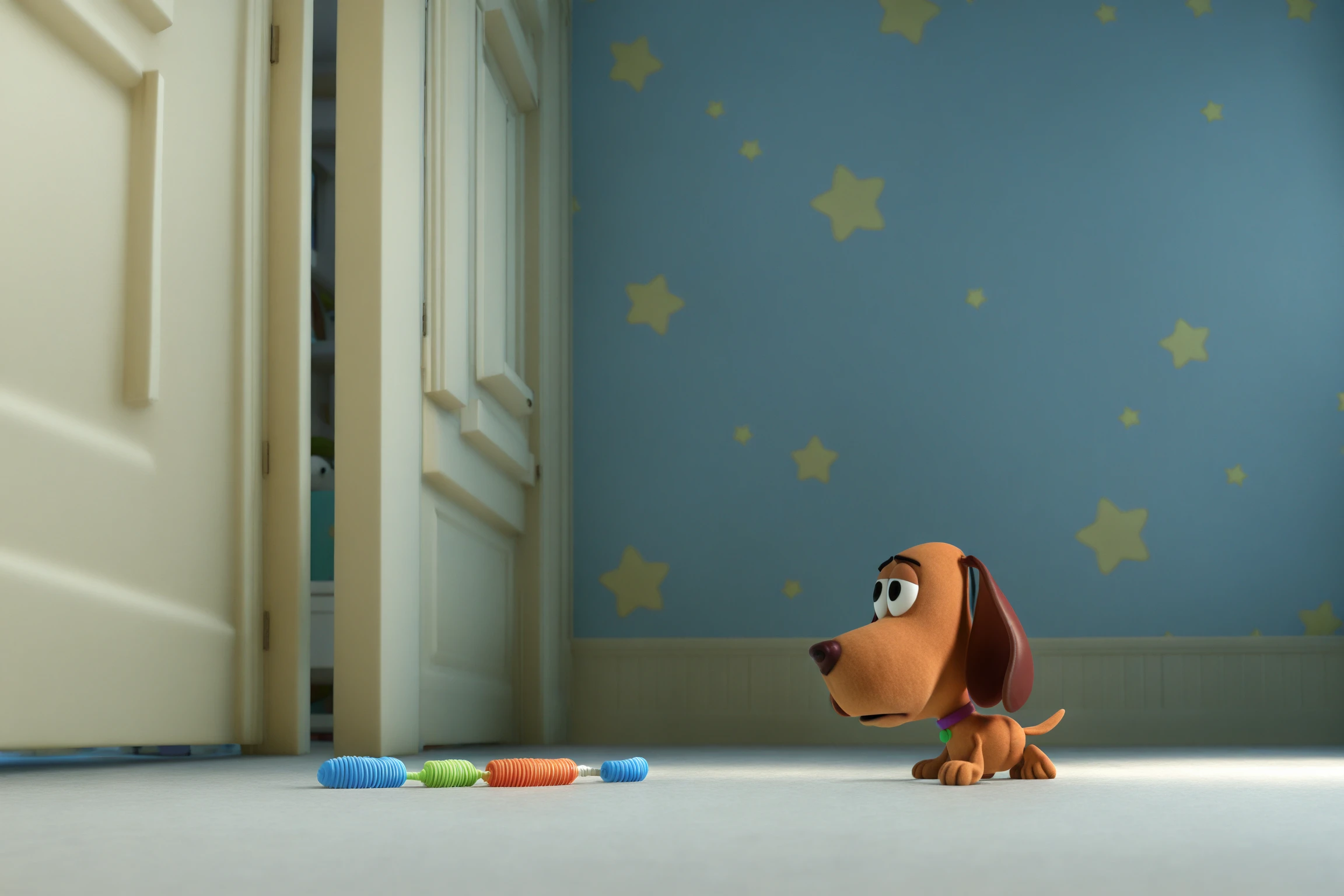 slinky_dog, slinky, dog, plastic_skin, floppy ears, long ears, black eyes