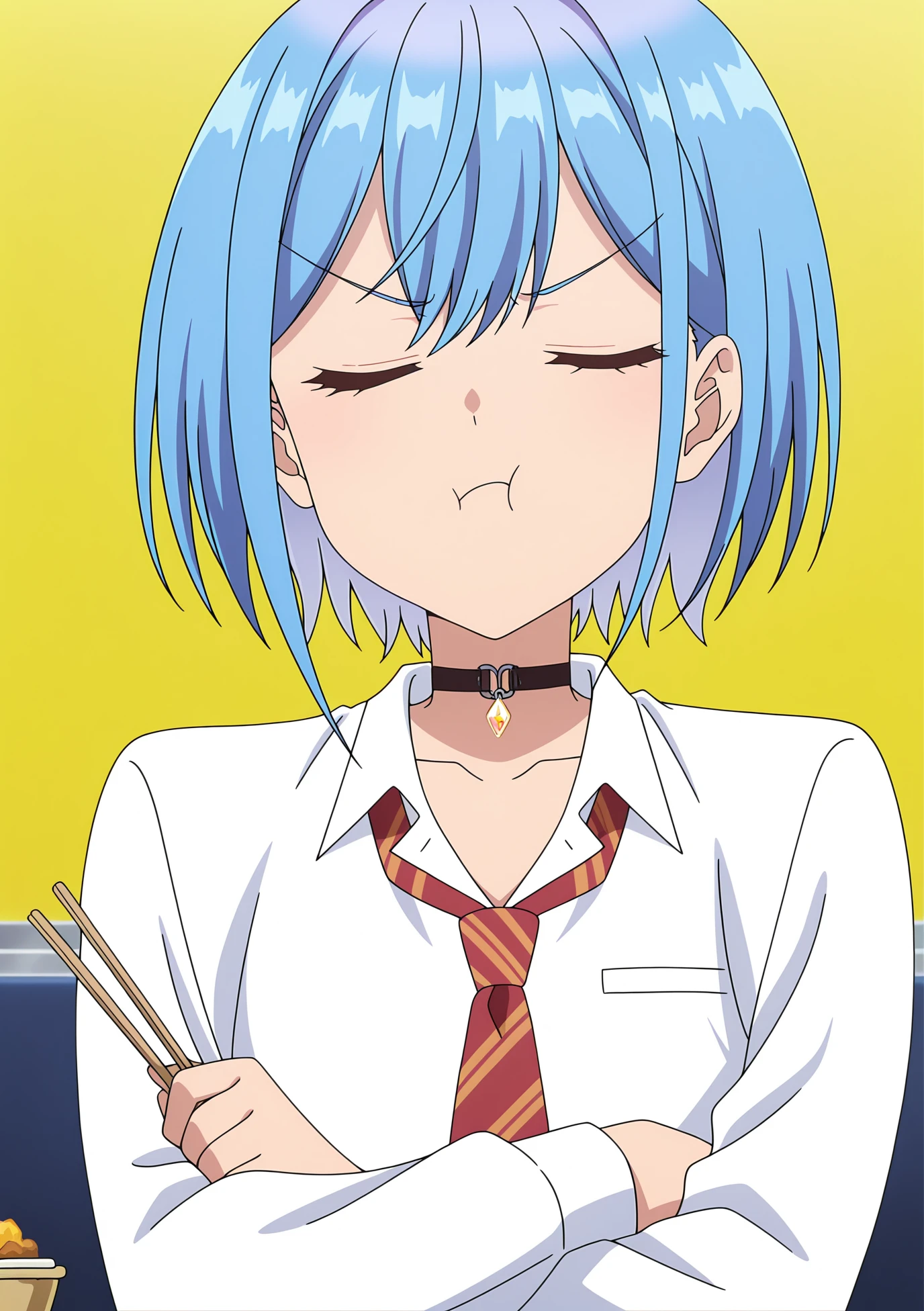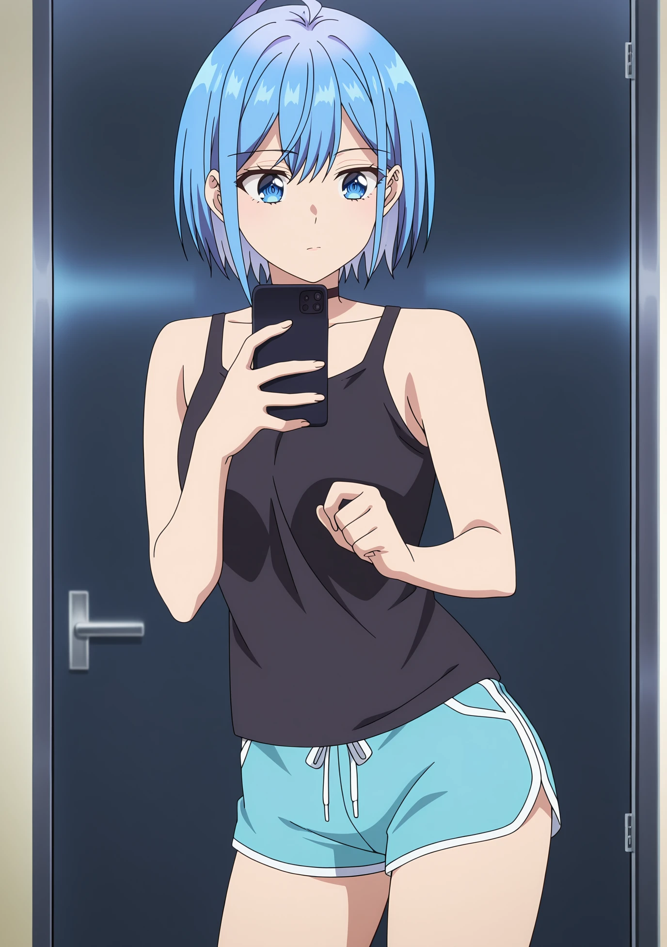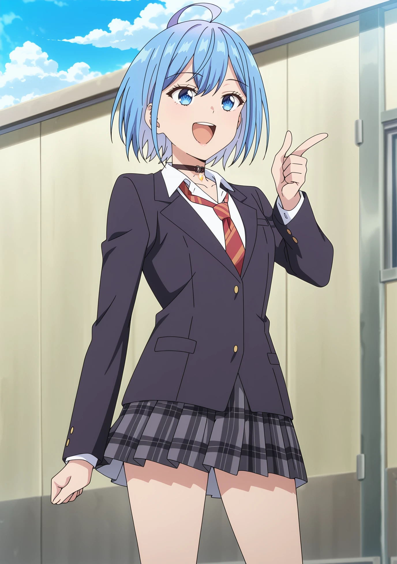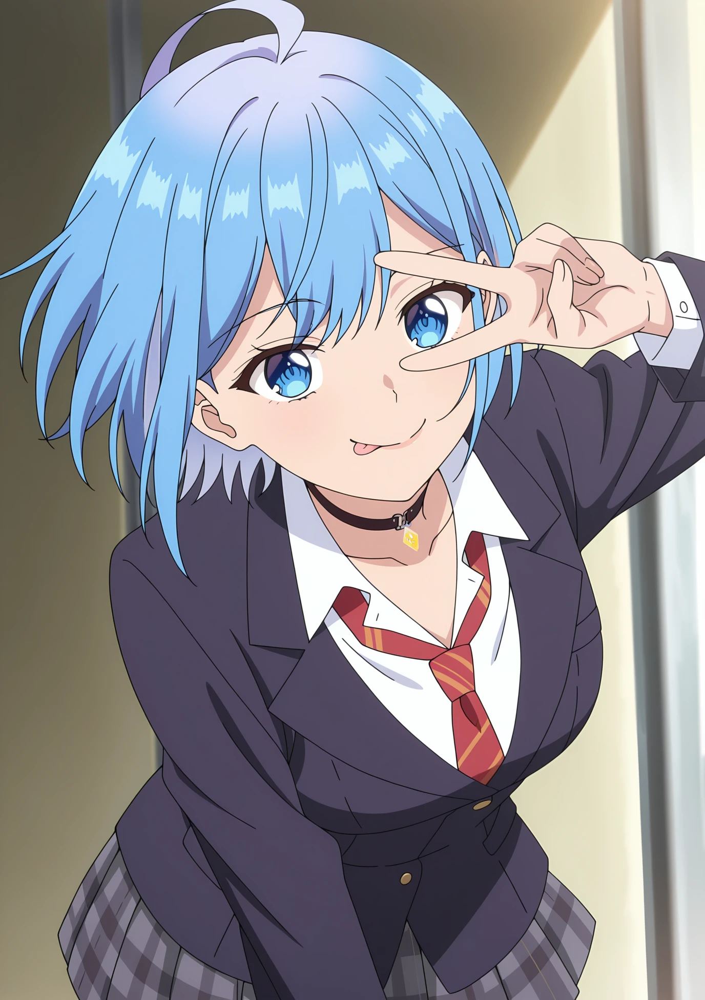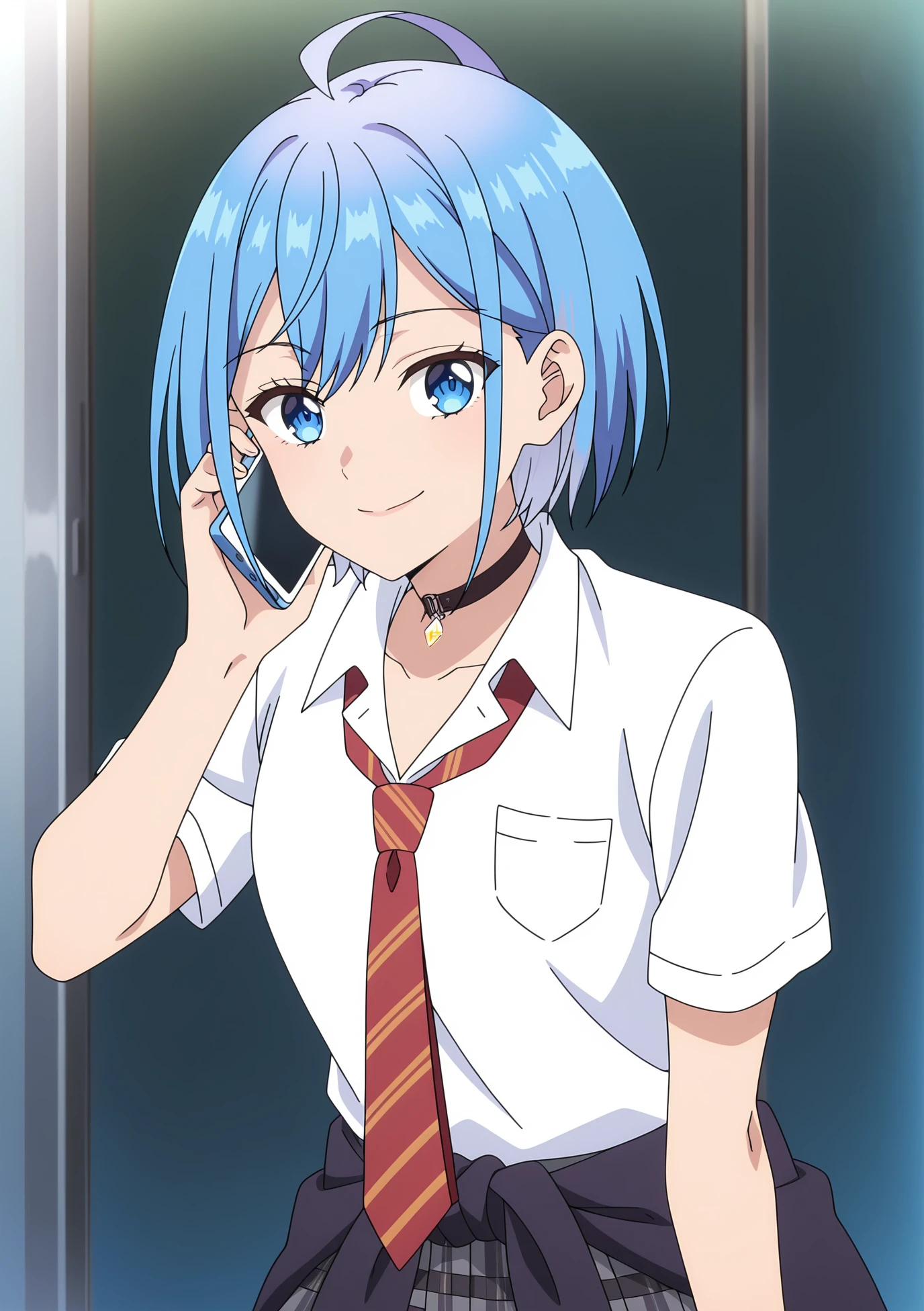 Himari, blue hair, blue eyes, short hair, choker, black choker, bangs, ahoge