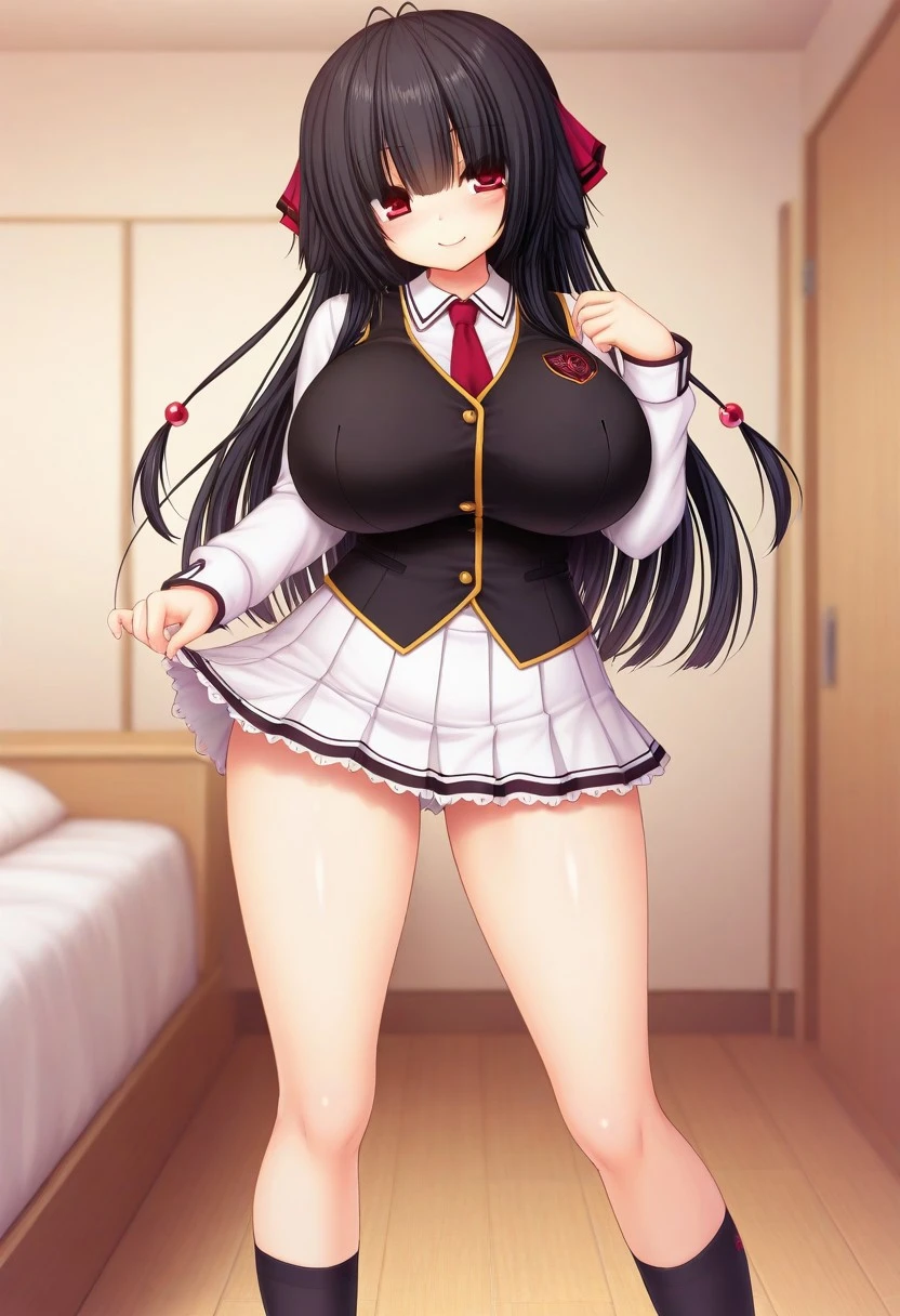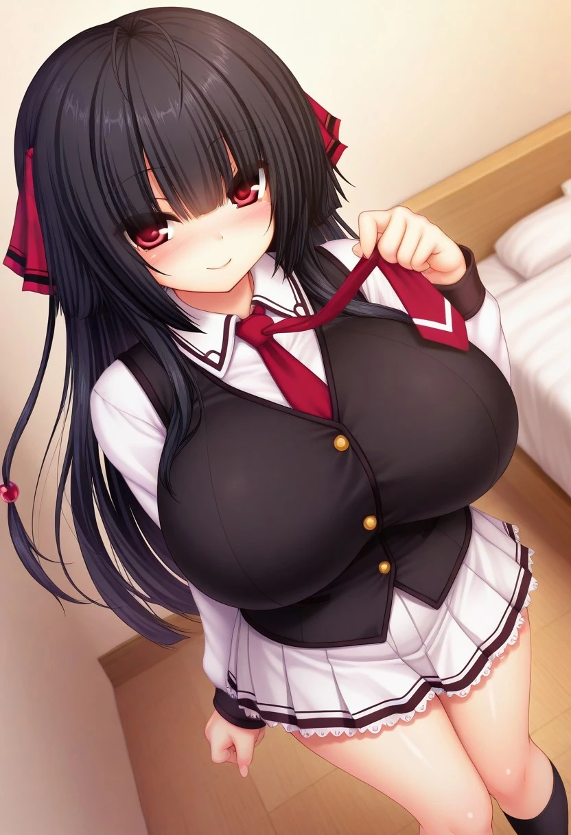 Recommend Prompt:Sana Kirishima, red eyes, black hair, long hair, hair ribbon, hair beads, ahoge,