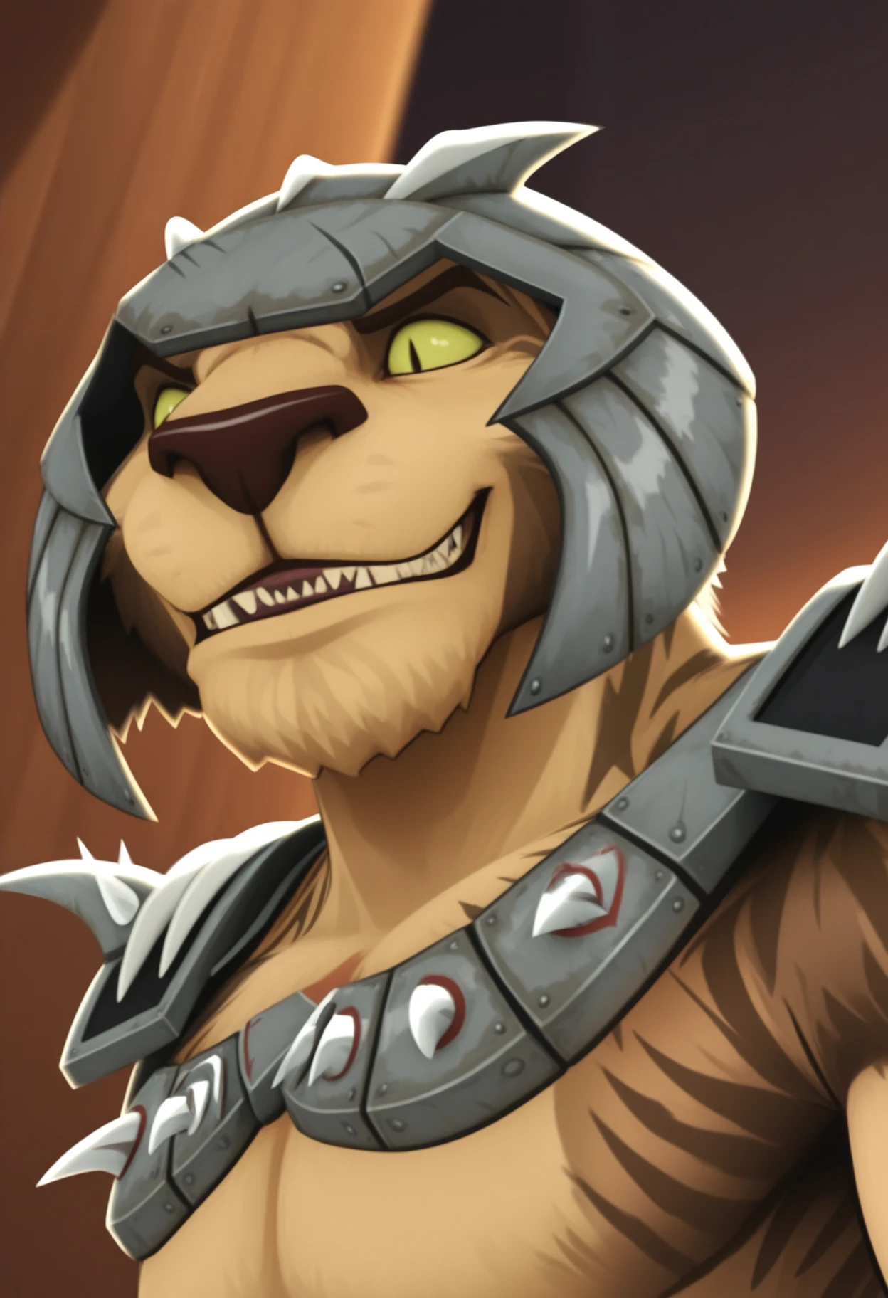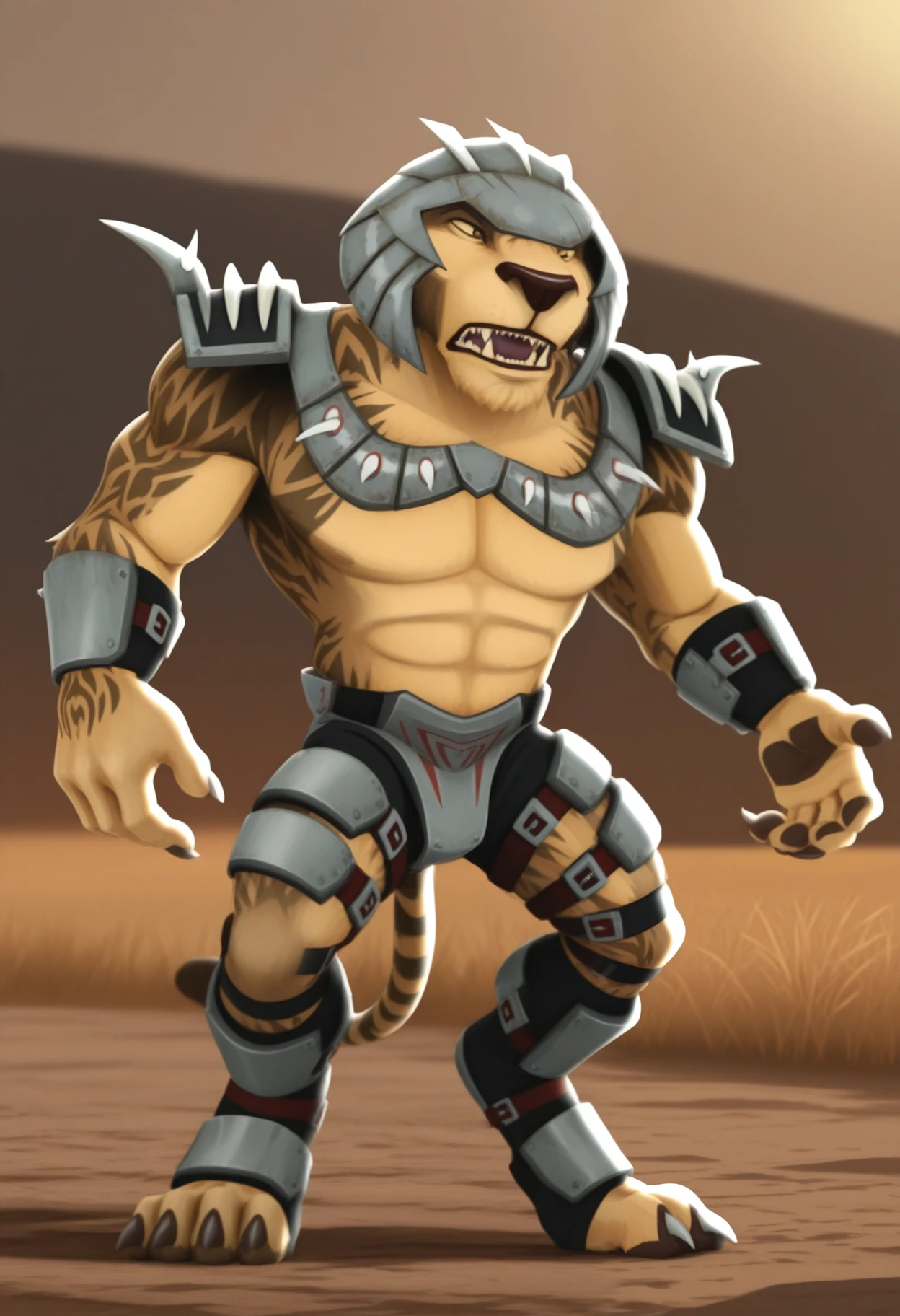Main outfit: helm, spiked pauldrons, spiked chest armor, bracer, crotch plate, black bottomwear, thigh straps, black leggings, shin guards, leg belts,