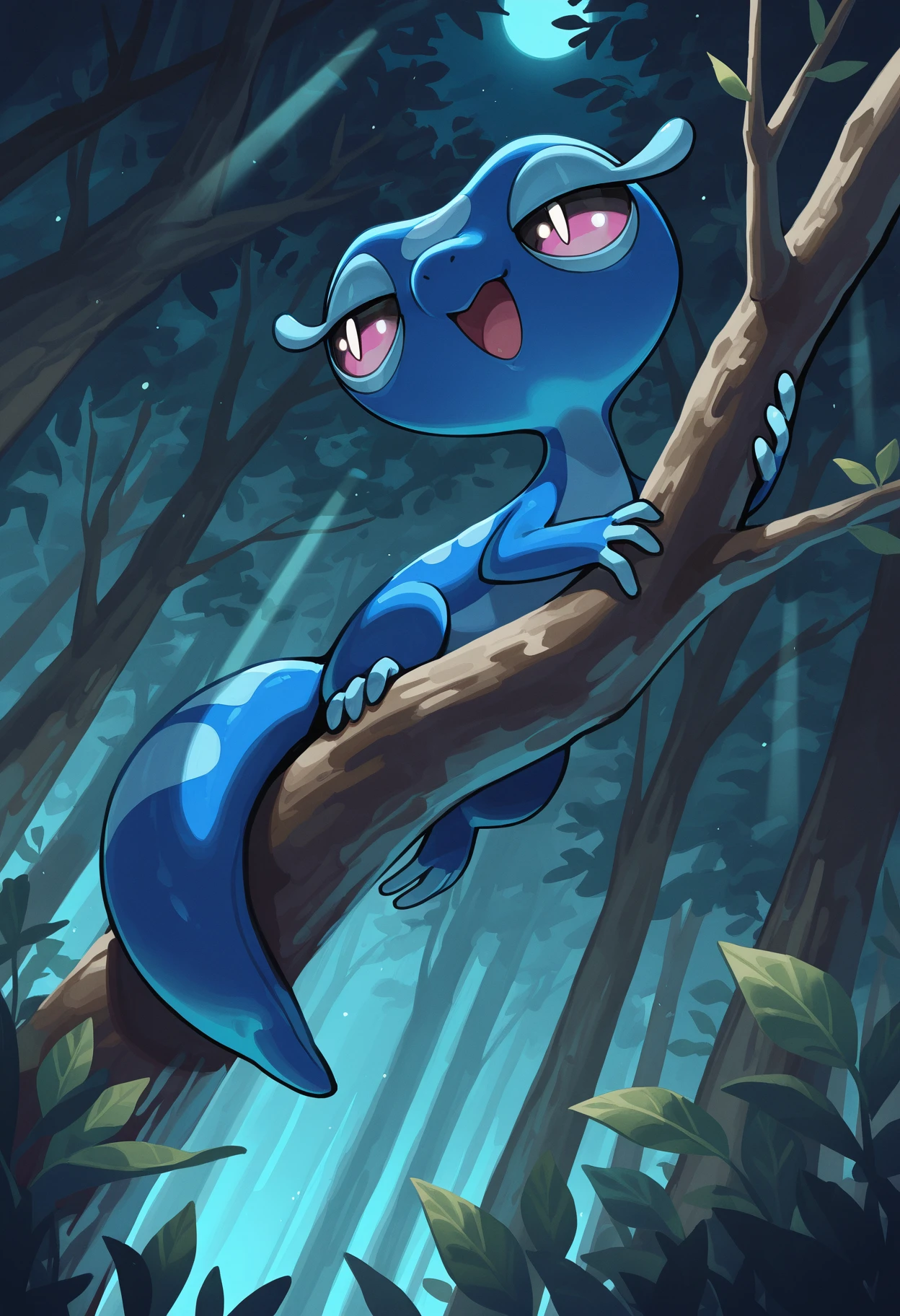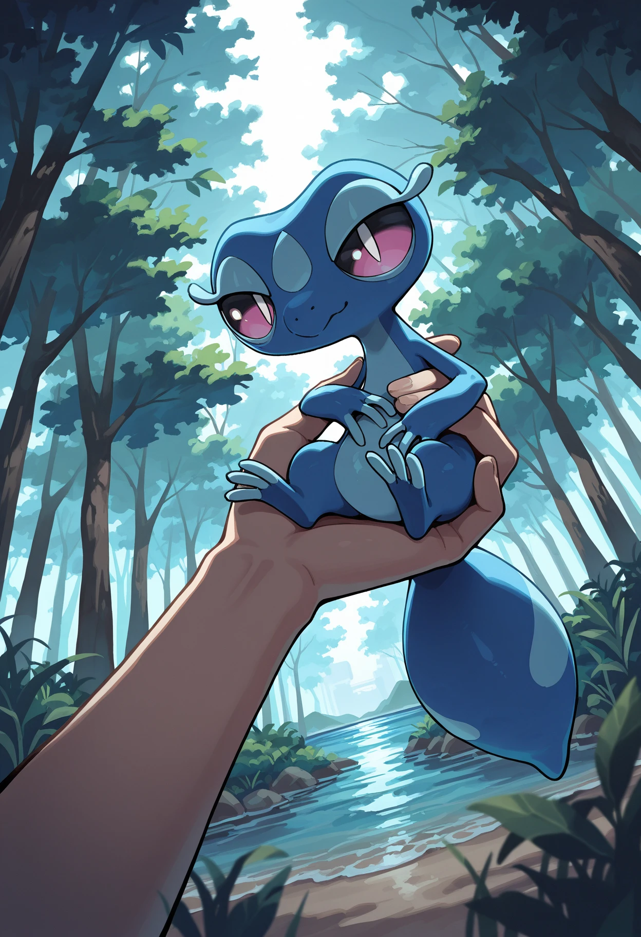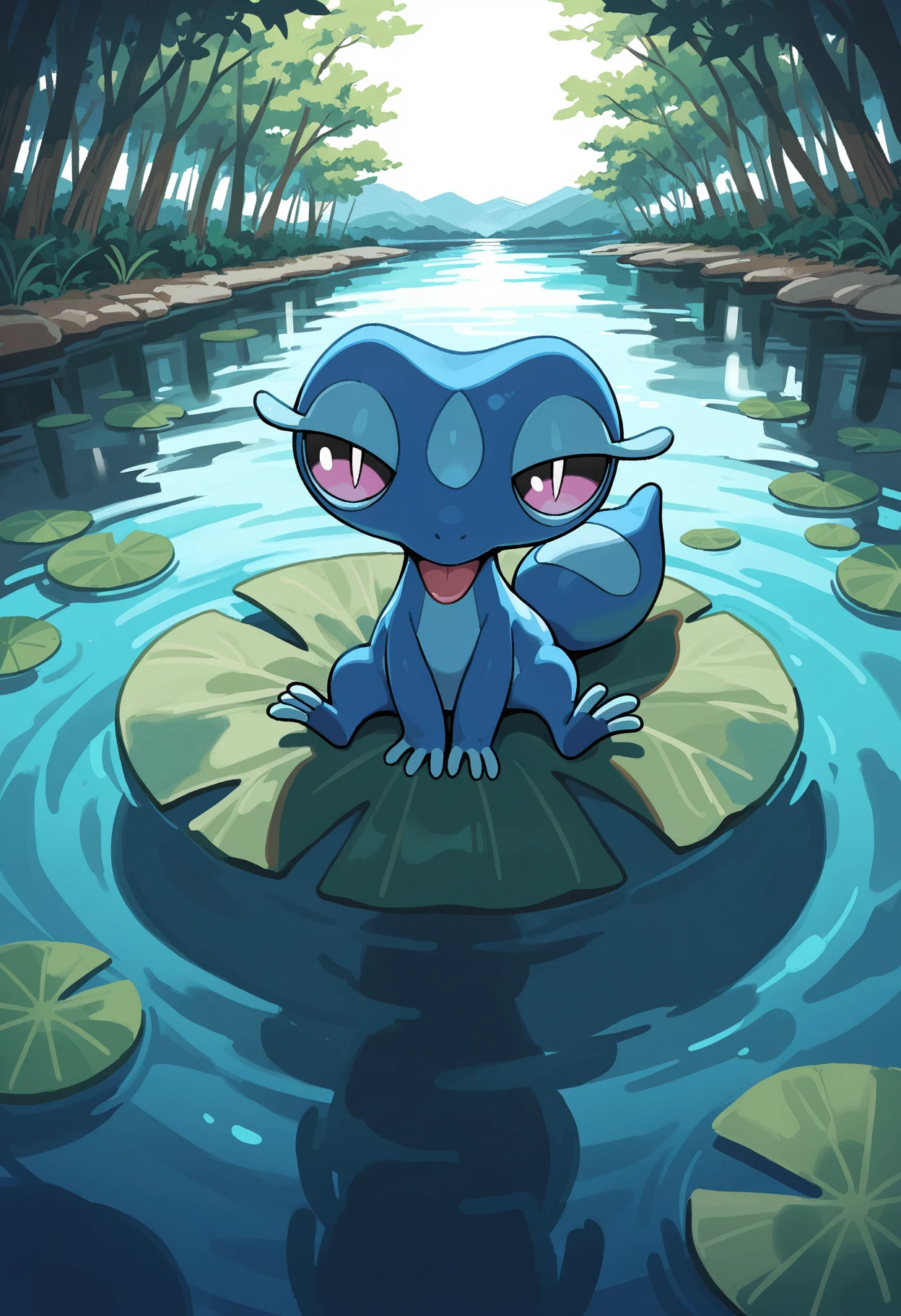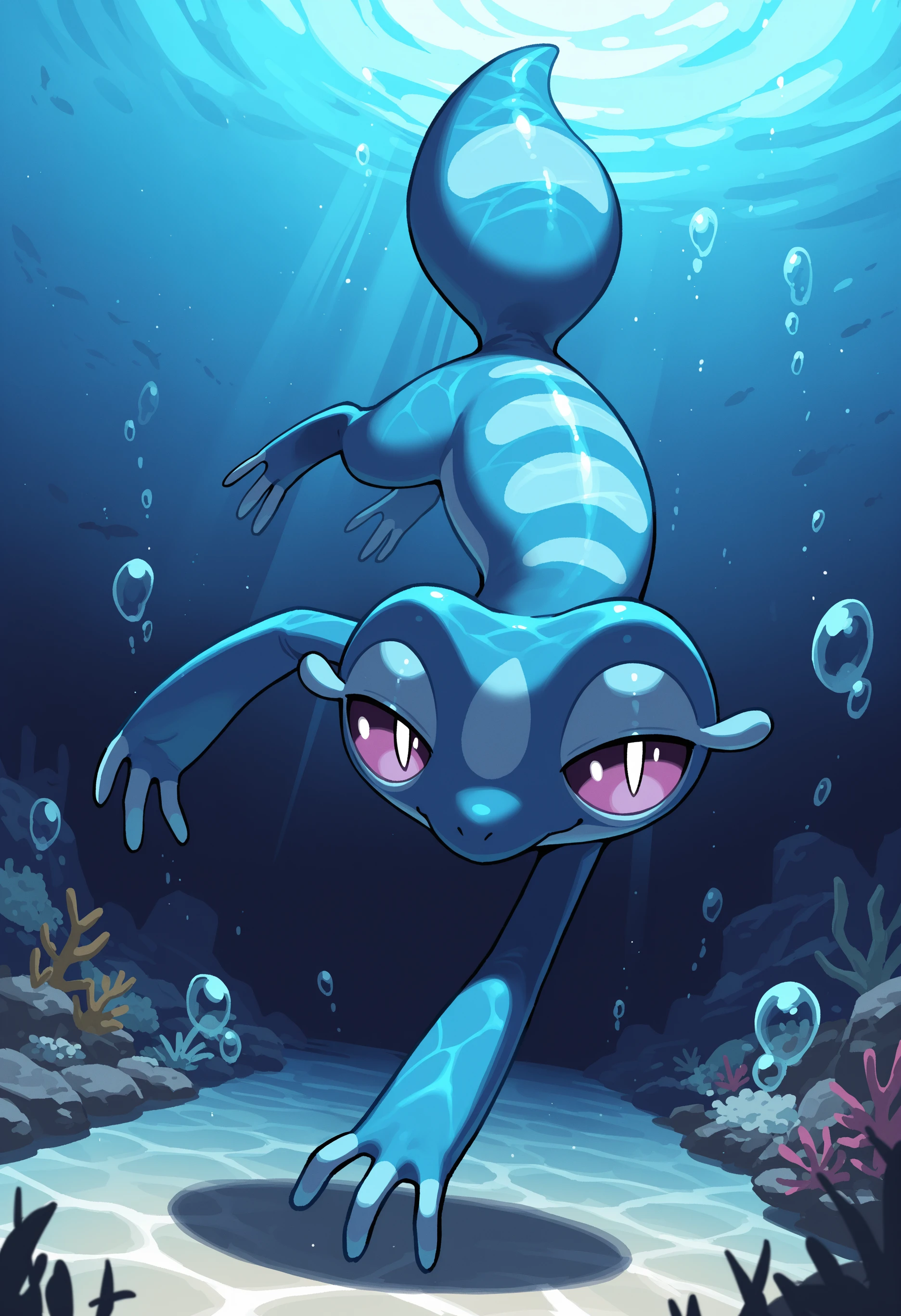 PKMNGecqua, 1other, gecko, pokemon (creature), purple sclera, white pupils, slit pupils, two-tone skin, blue skin, light blue skin,