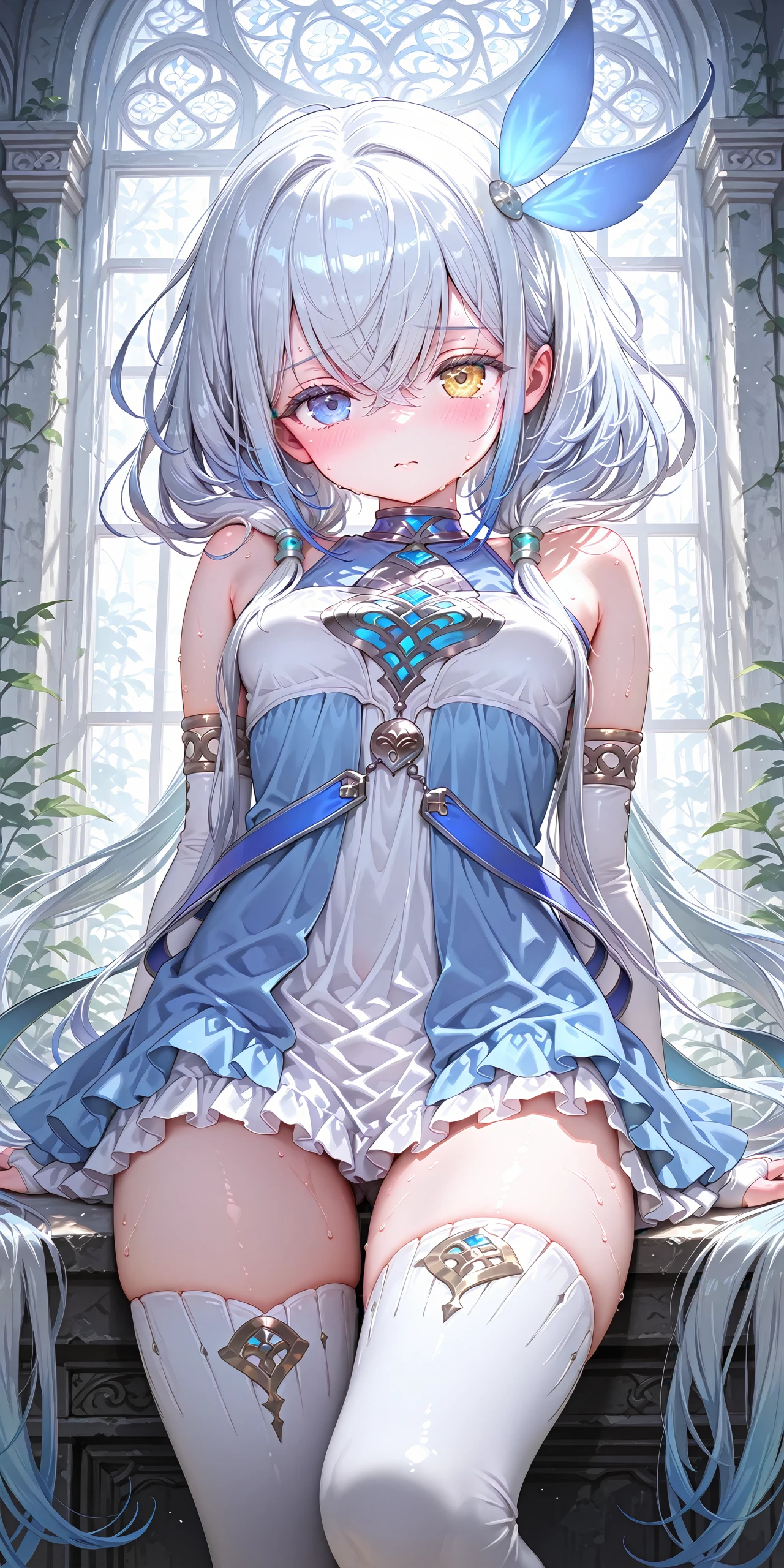 Velharia-Main,Heterochromia,hair ornament,dress,bare shoulders,elbow gloves,thighhighs,