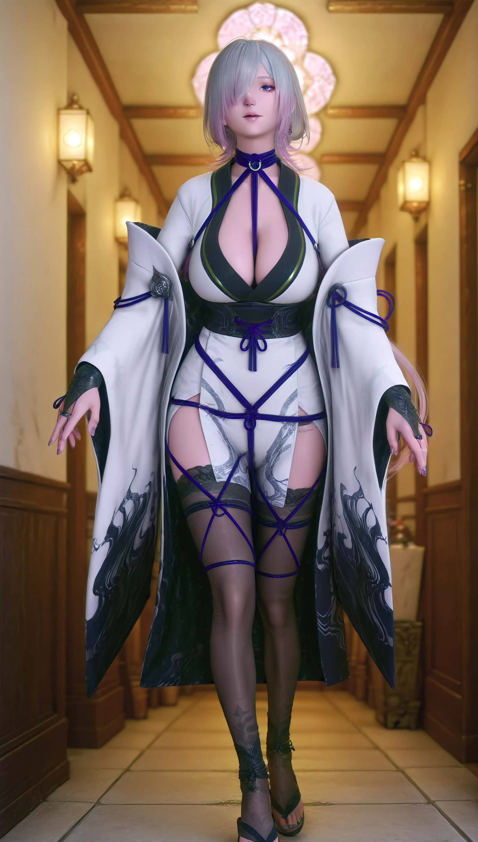 thighhighs, japanese clothes, wide sleeves, kimono, sash, sandals, toeless legwear, bdsm, rope, shibari, ribbon, ring, bridal gauntlets