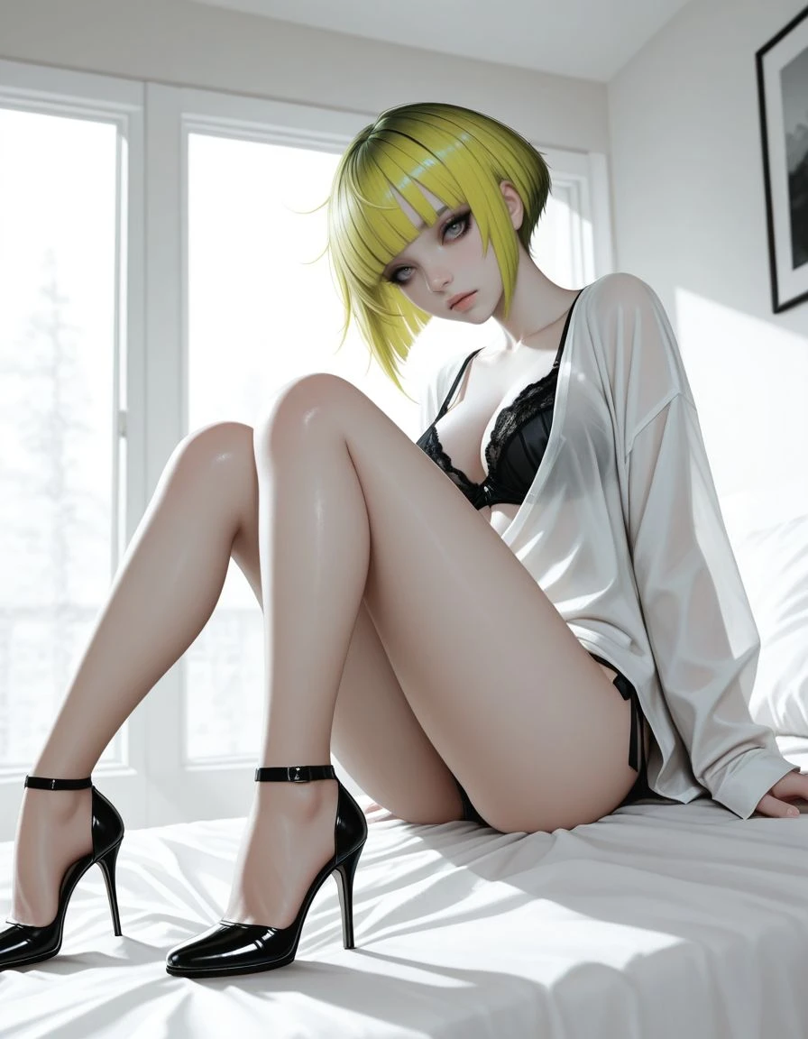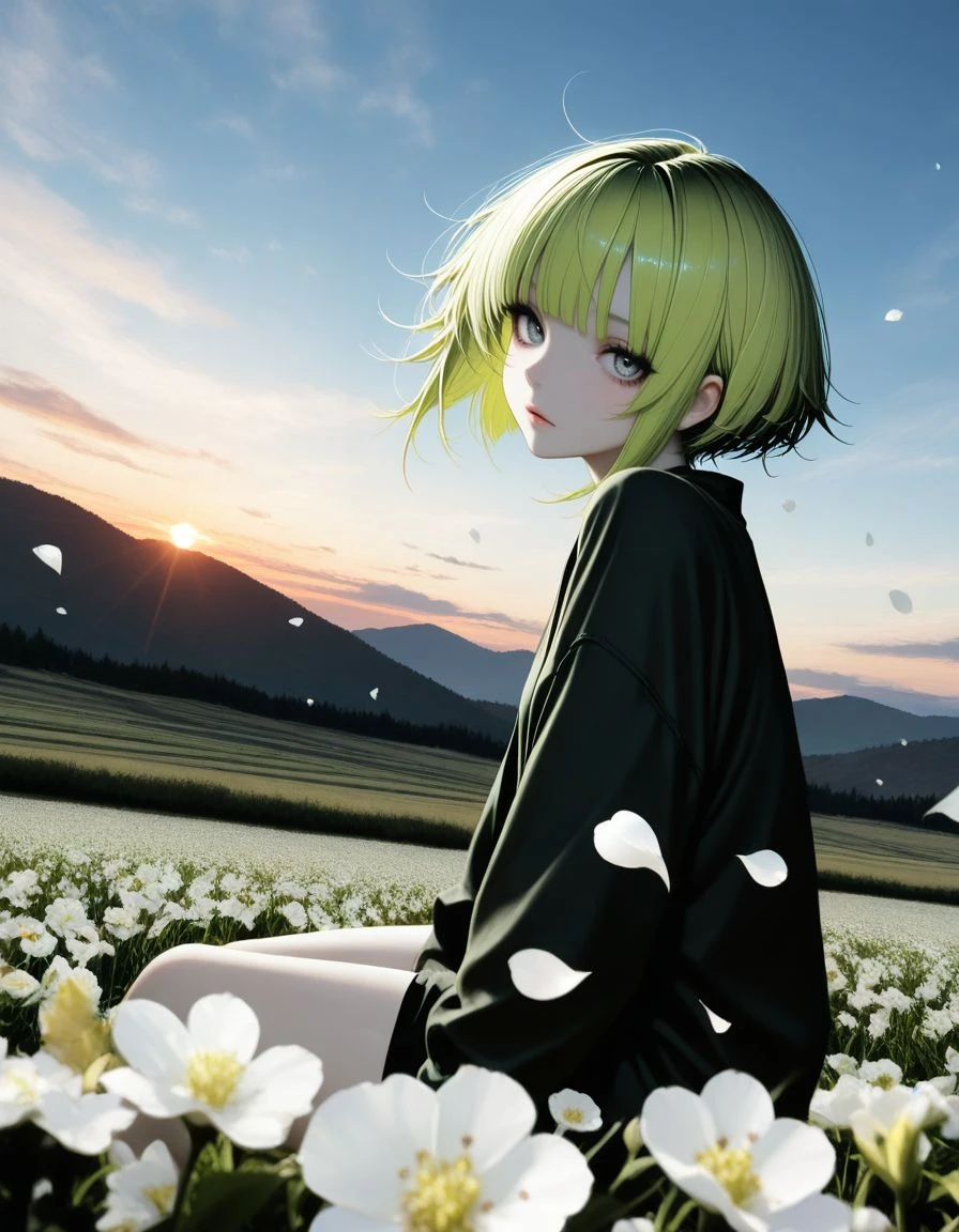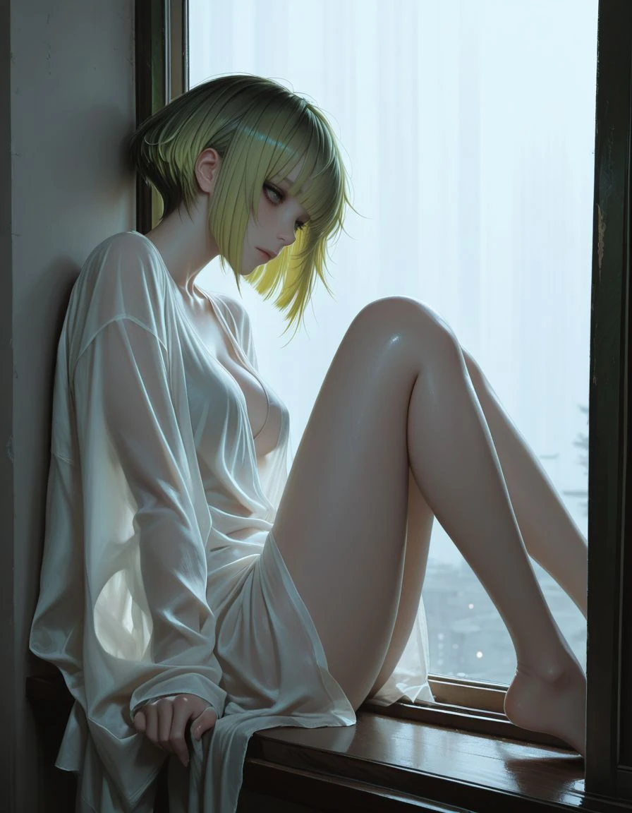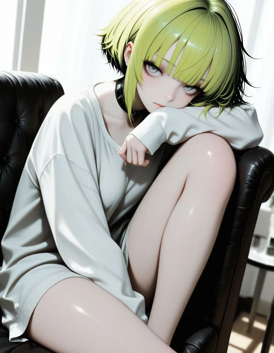 OCM4doka, short hair, green hair, Grey eyes, blunt bangs