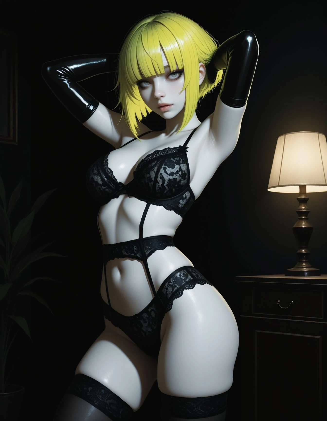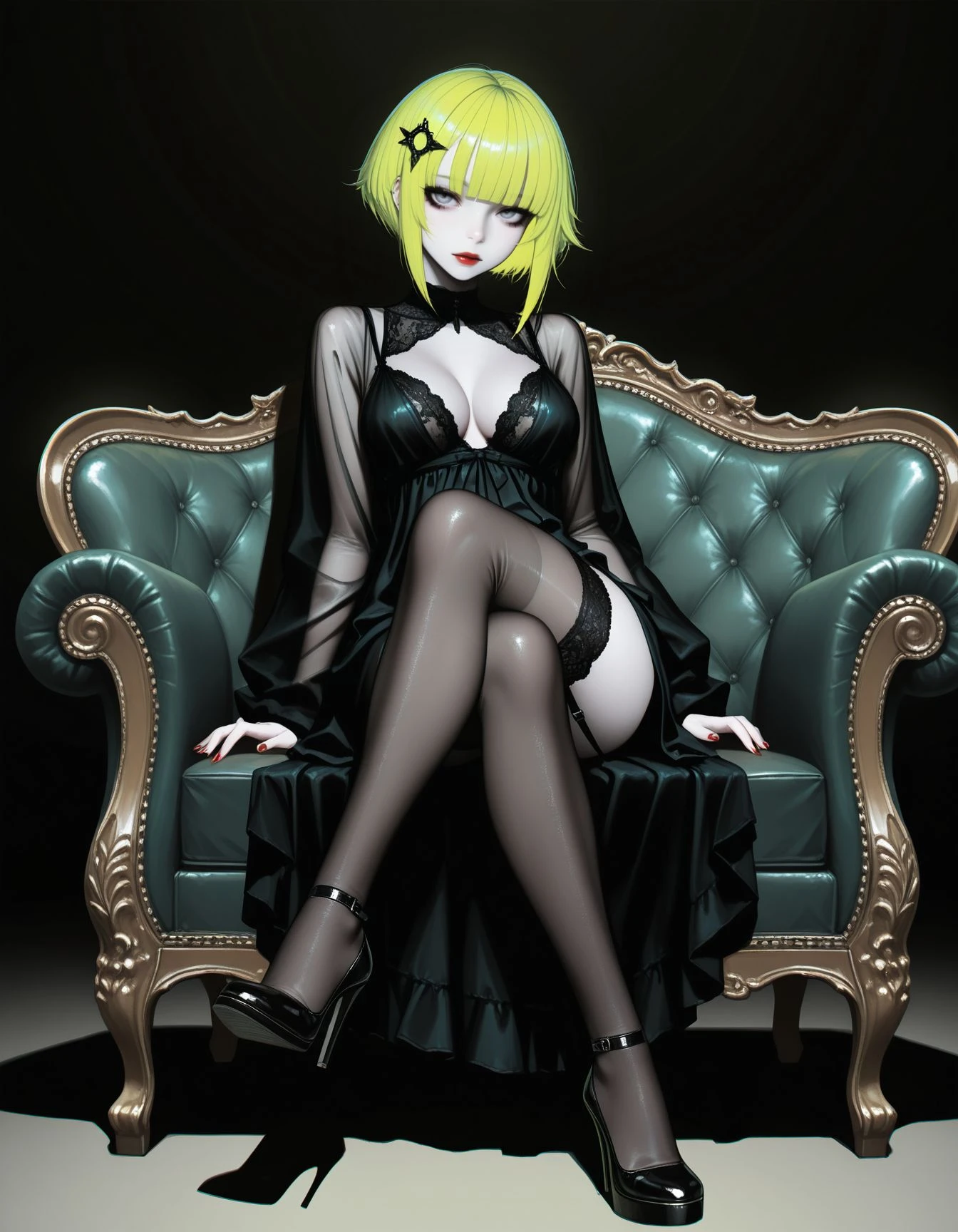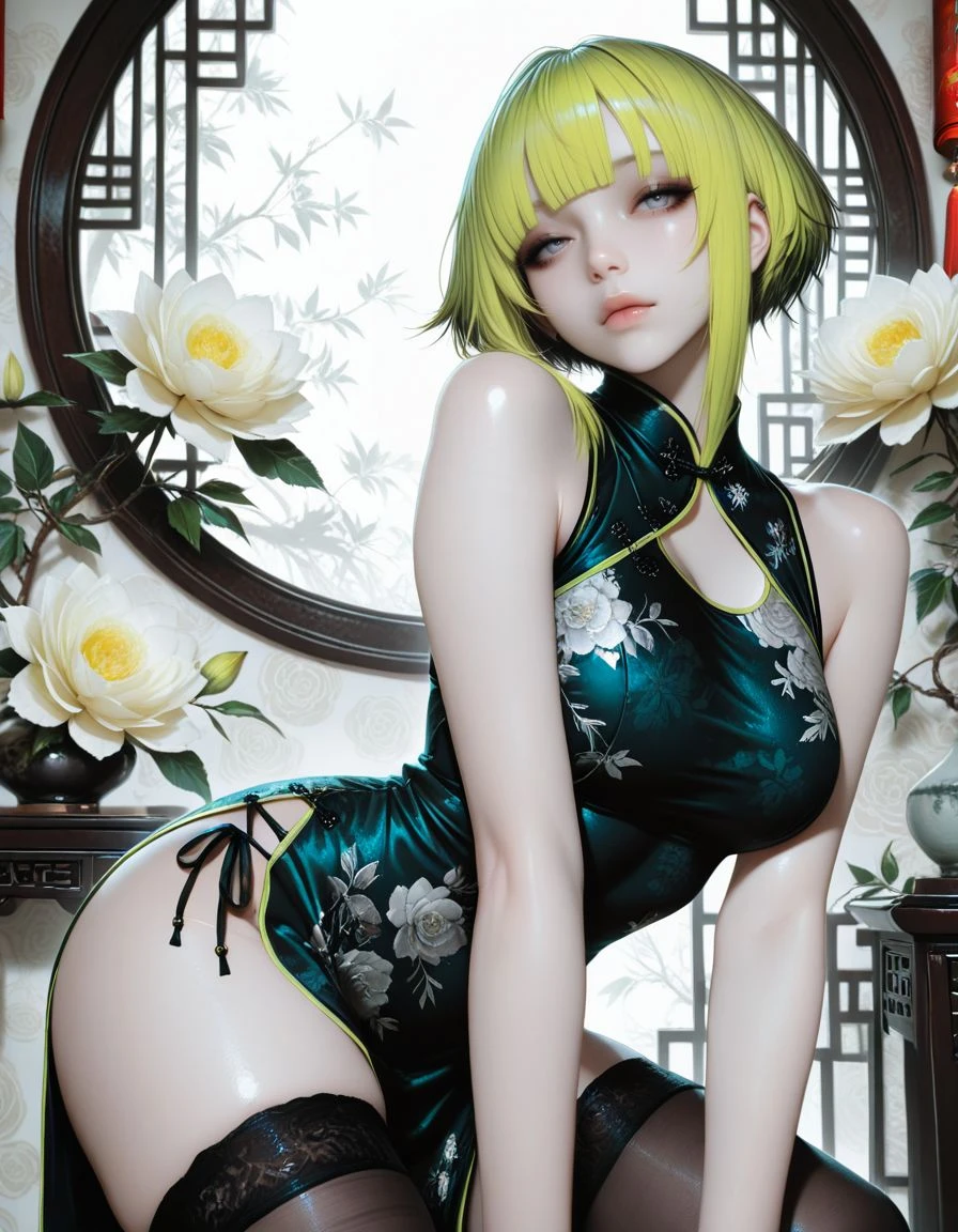 OCM4doka, short hair, green hair, Grey eyes, blunt bangs