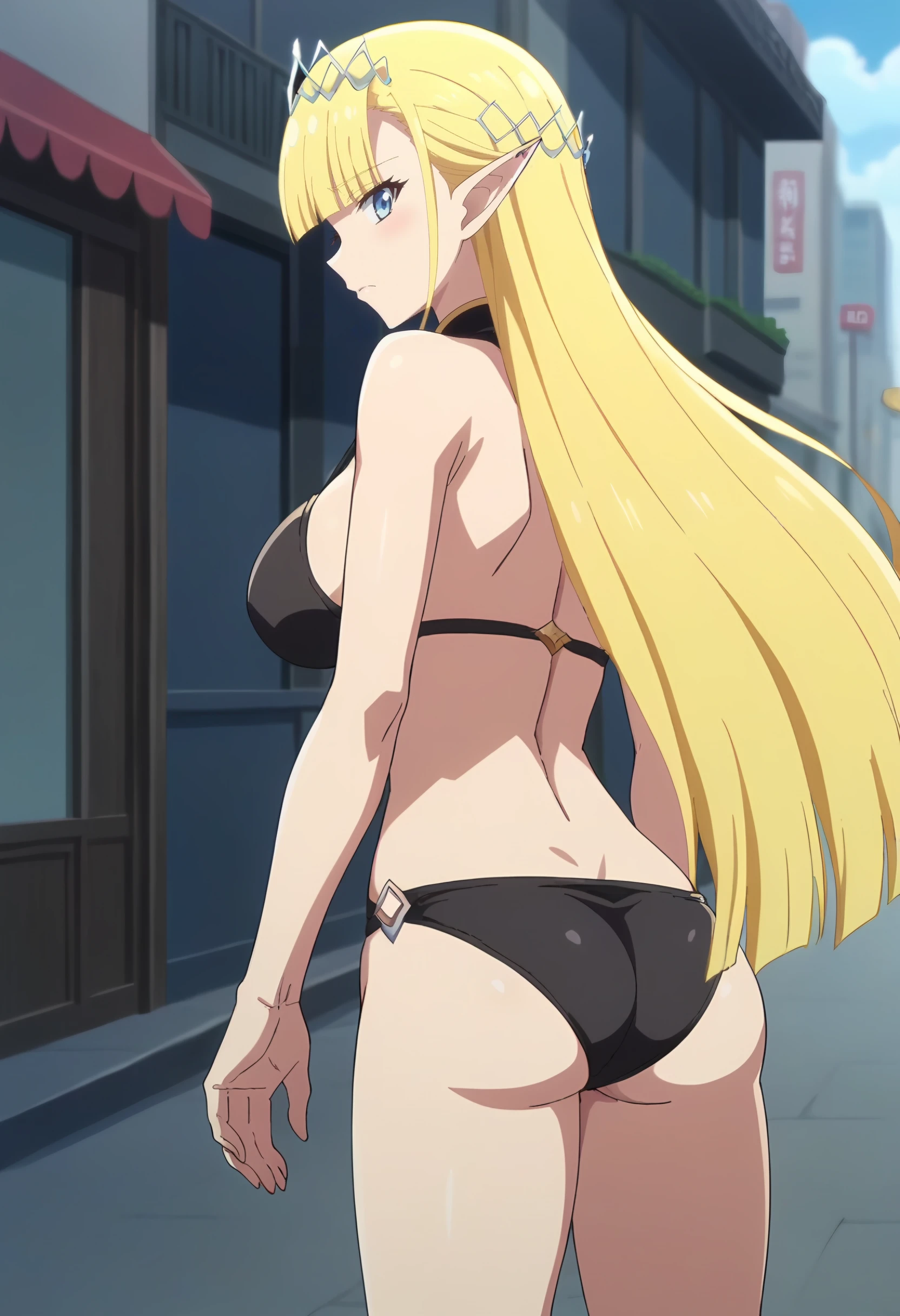 To prompt her elf form, just add : elf, pointy ears to your prompt