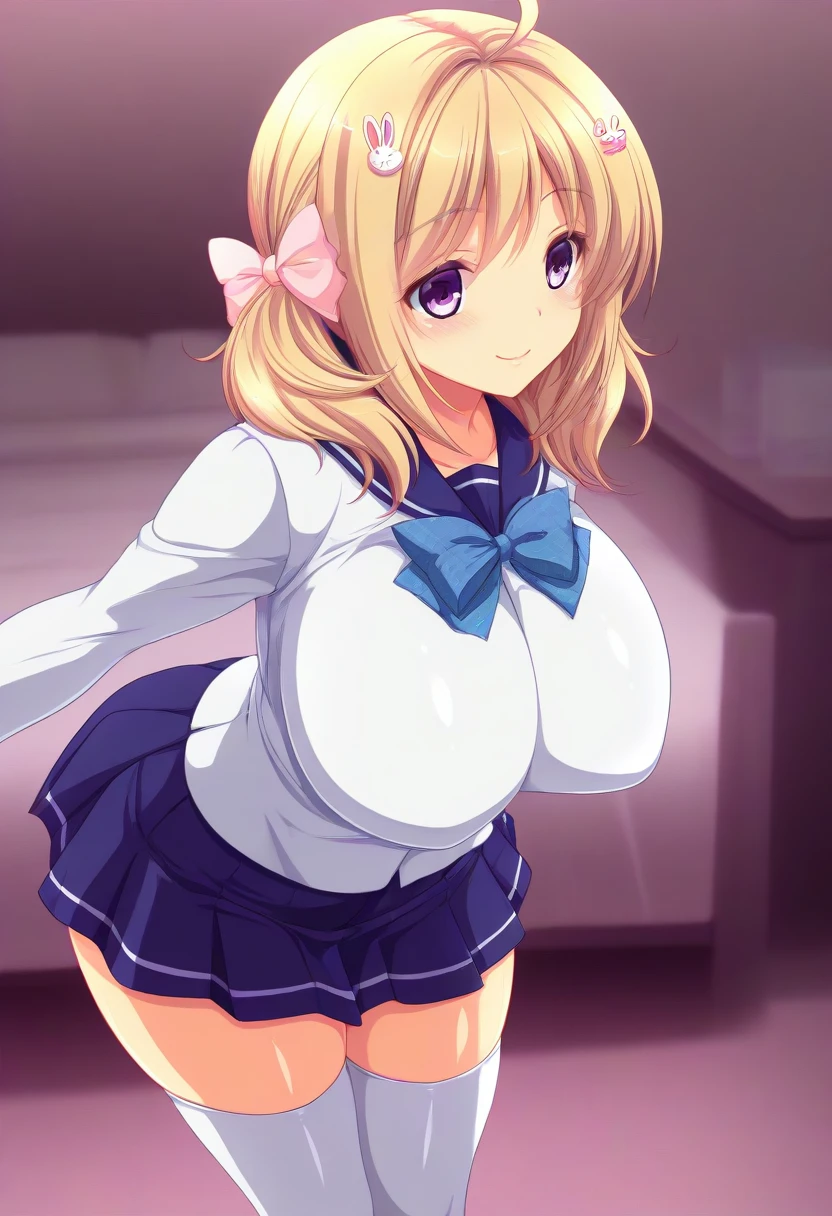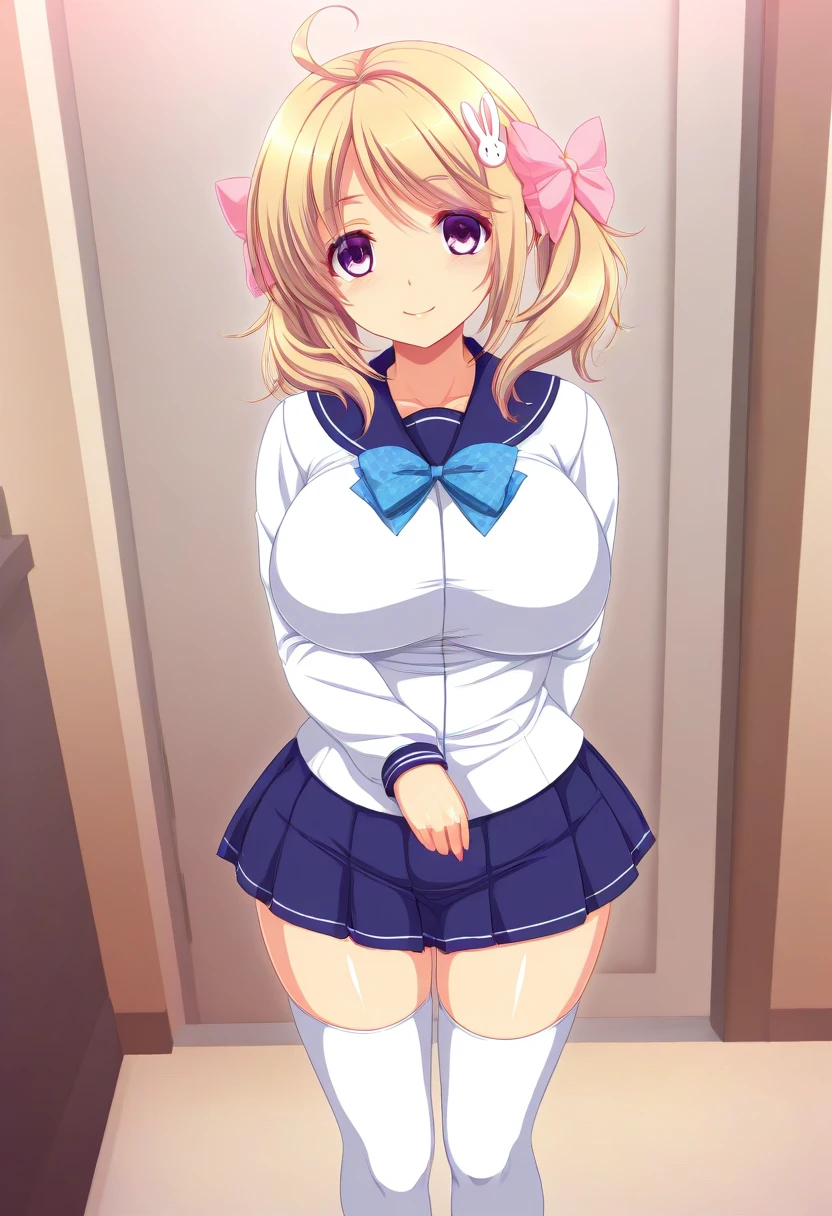 Recommend Prompt:An Tsuburai, purple eyes, blonde hair, medium hair, twintails, ahoge, hair ribbon, rabbit hair ornament,