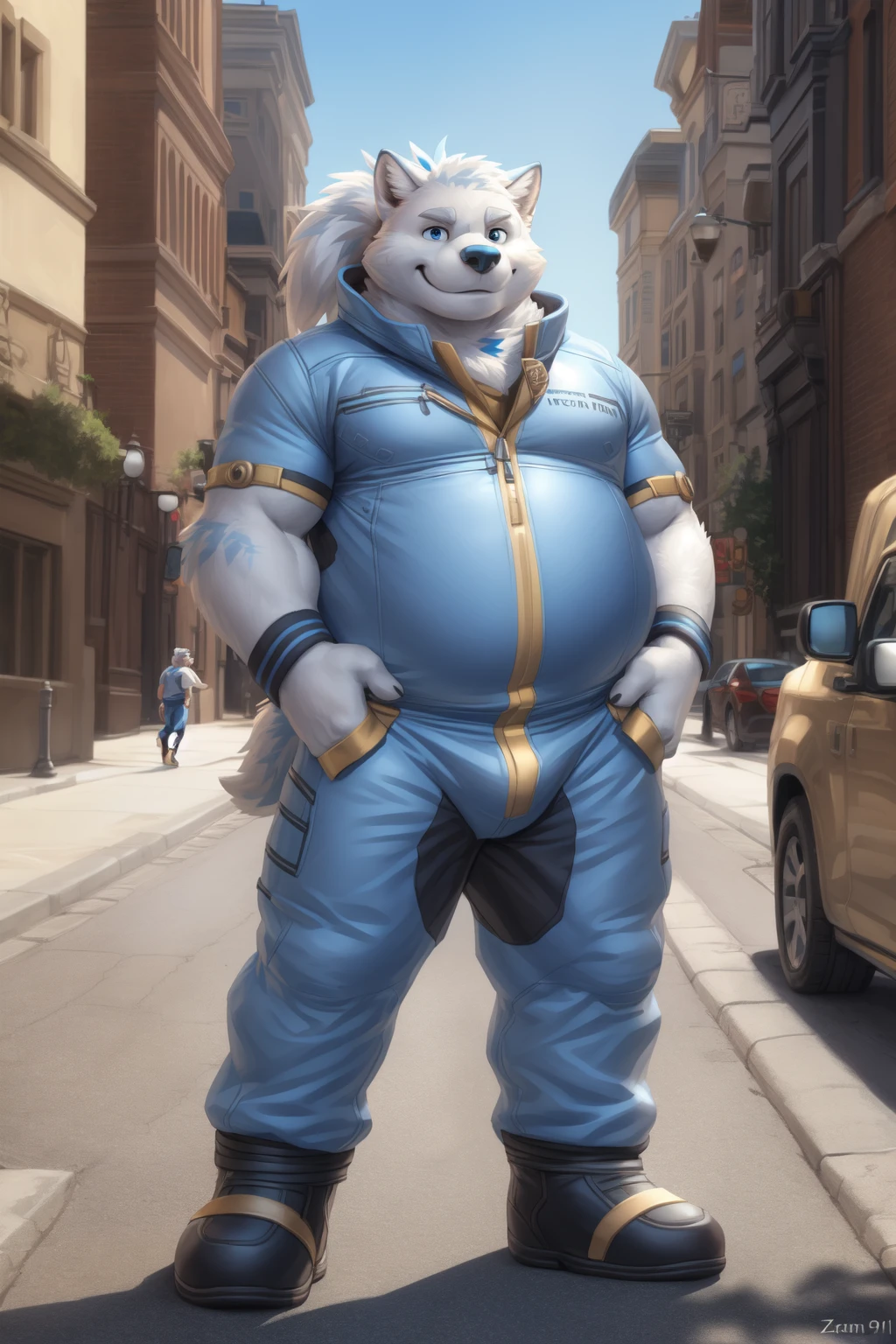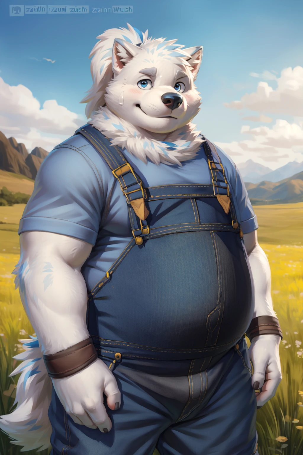 Reinforcement Prompts: "ponytail, musclegut, blue eyes, big eyes"