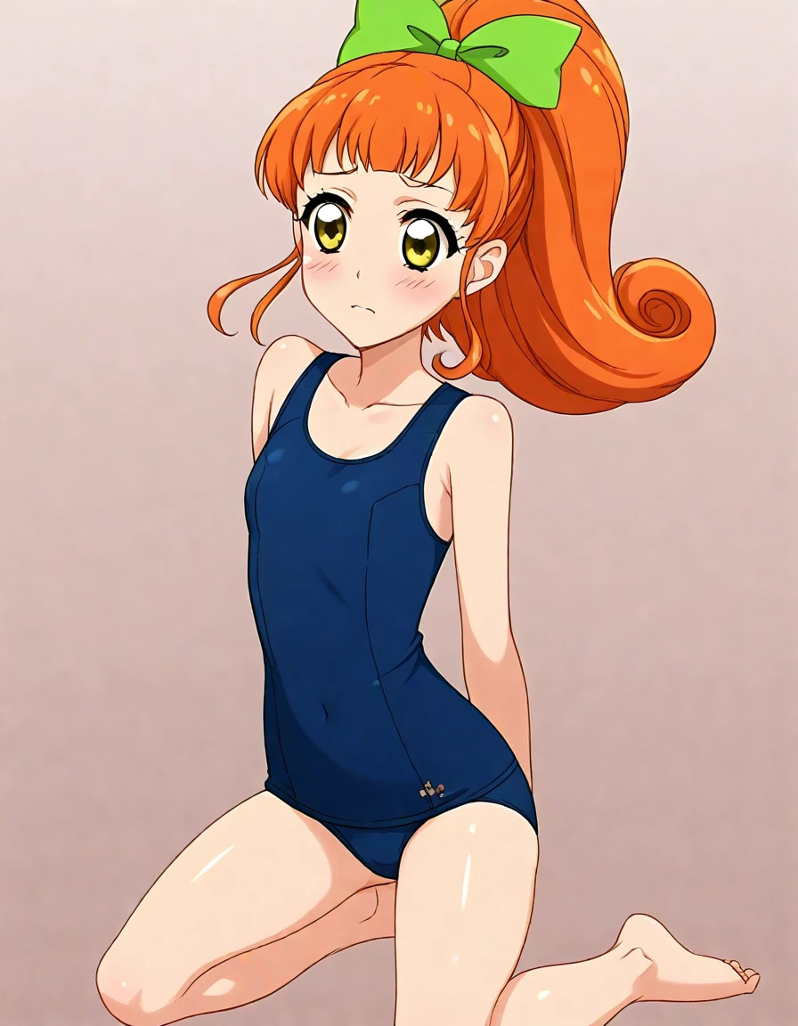 KURISU_kokone,orange hair,green hair ribbon