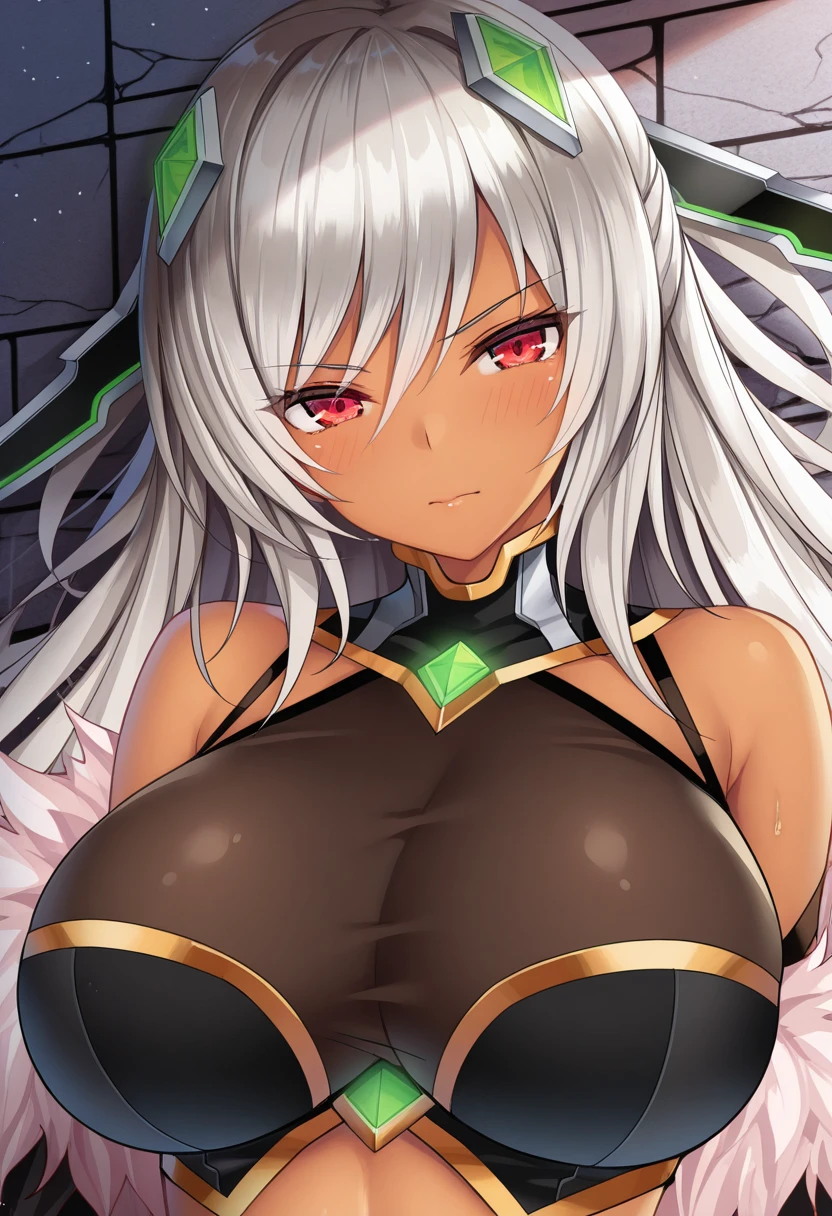 Sometimes fur boa/cape will show up when undefined. Try fur cape, or fur boa, or fur coat. This also has references for flame tattoo on her leg.