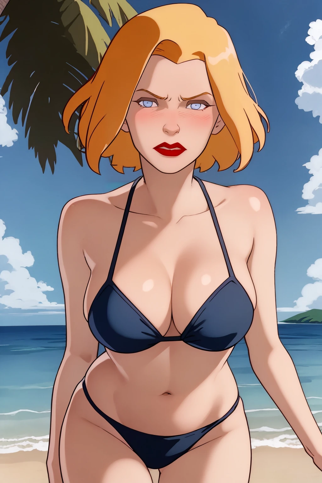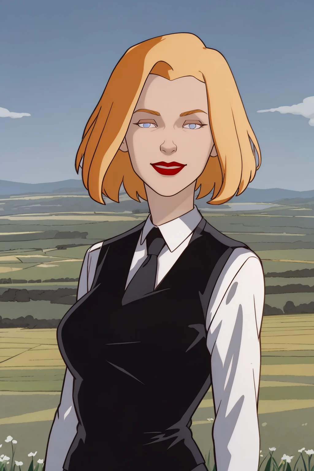 Basic prompts : 1girl, blonde hair, short hair, blue eyes, red lips, makeup