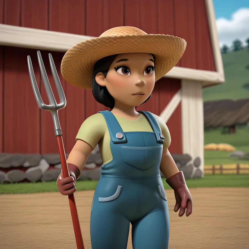 farmeryumi, 3d, 1girl, solo, black hair, brown eyes, straw hat,