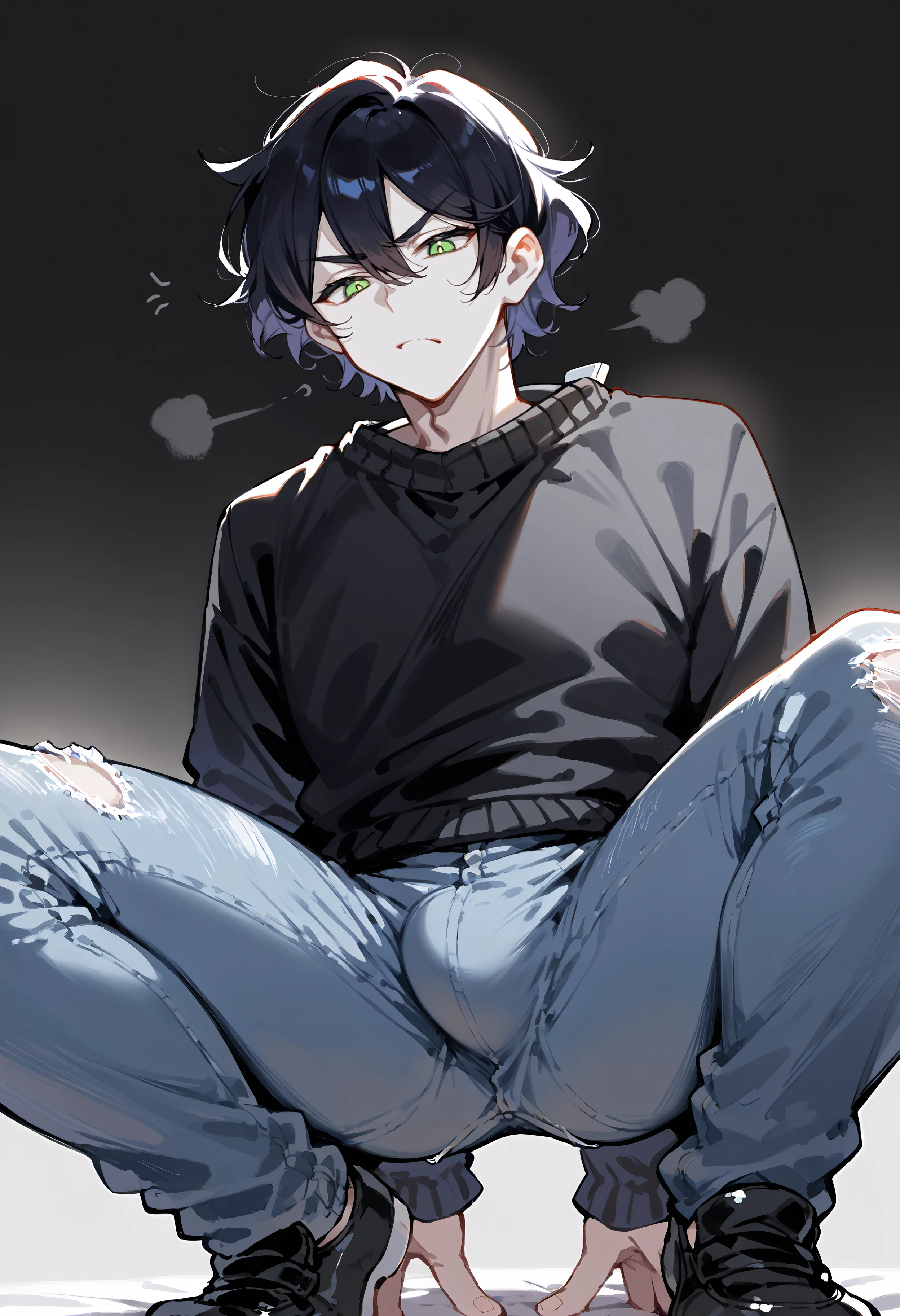 Andrew Graves,1boy, black hair, short hair, green eyes