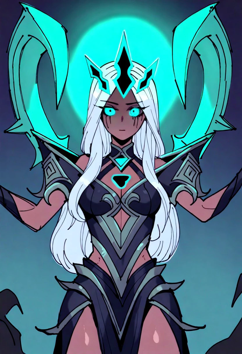 crown,dark-skinned female,glowing eyes