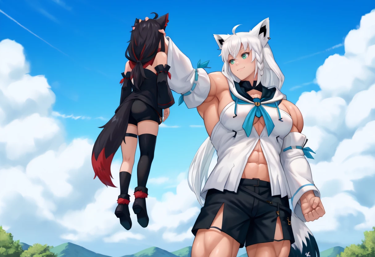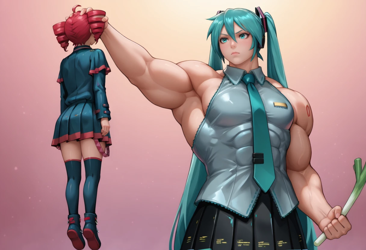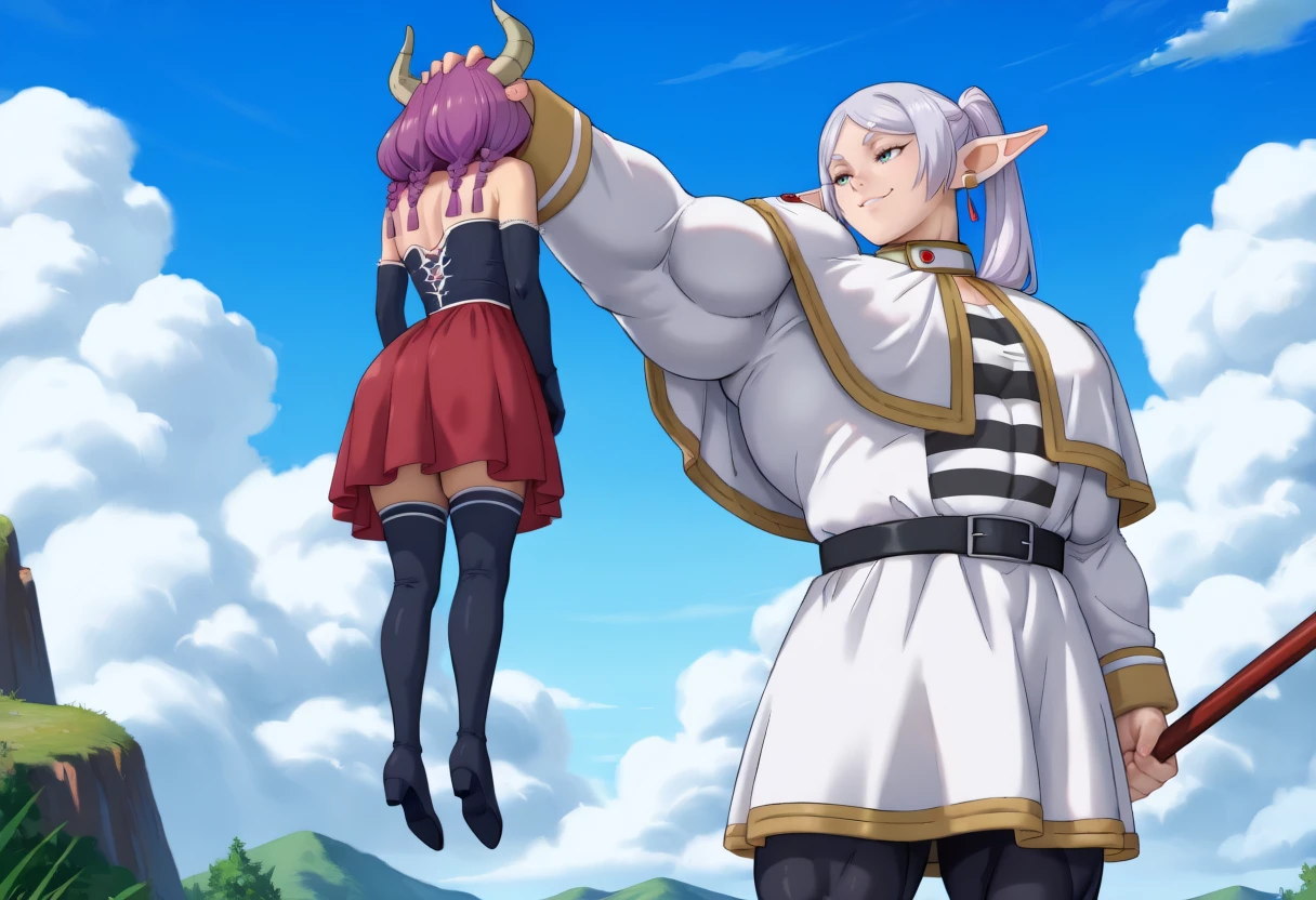 Trigger word: lifting person, hand on another's head, size difference, muscular