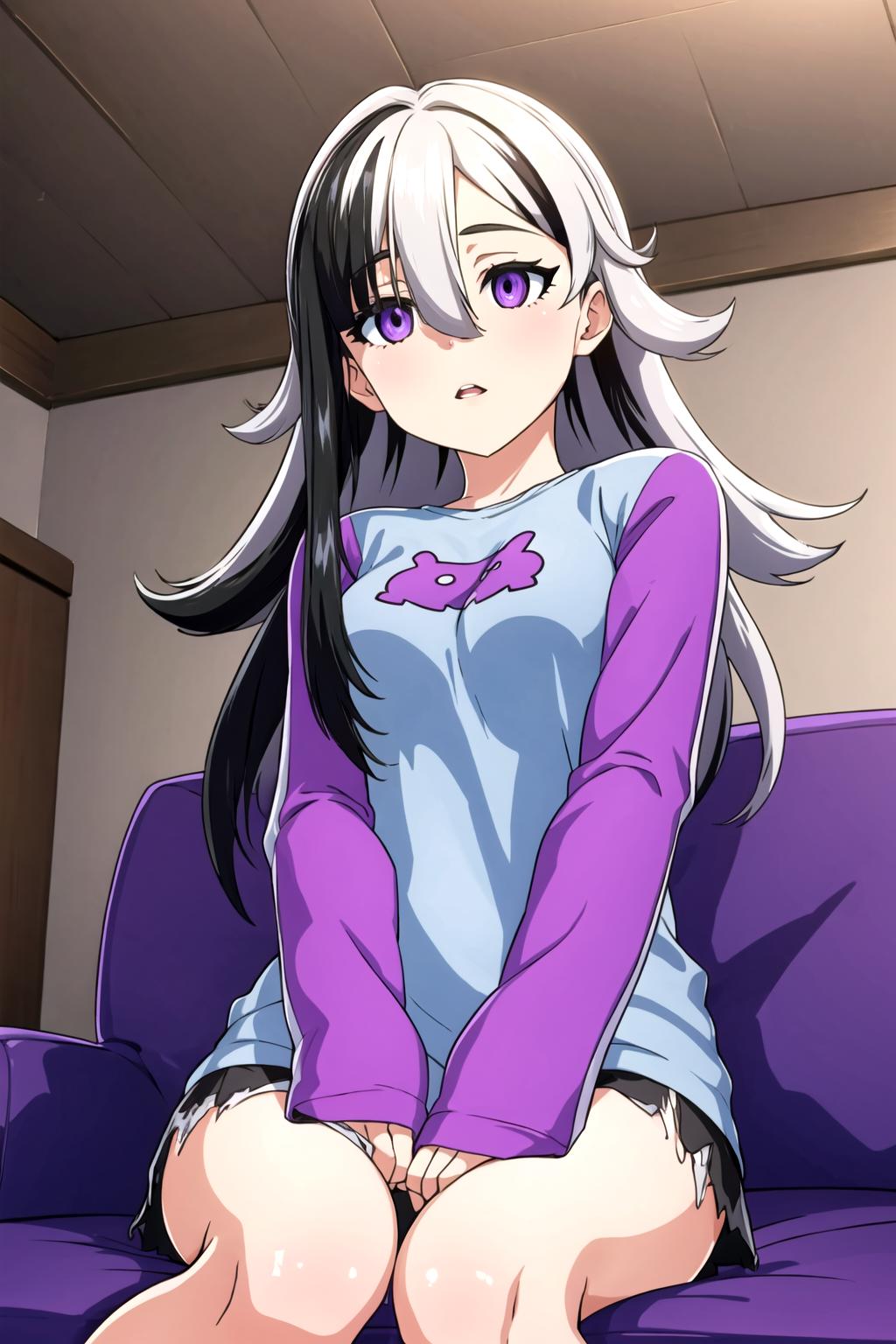 ・MGCM Dia(long hair, multicolored hair, black hair, white hair, hair over one eye, purple eyes, )