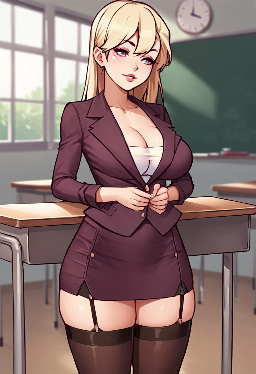 Pencil skirt, cleavaje, thighhighs