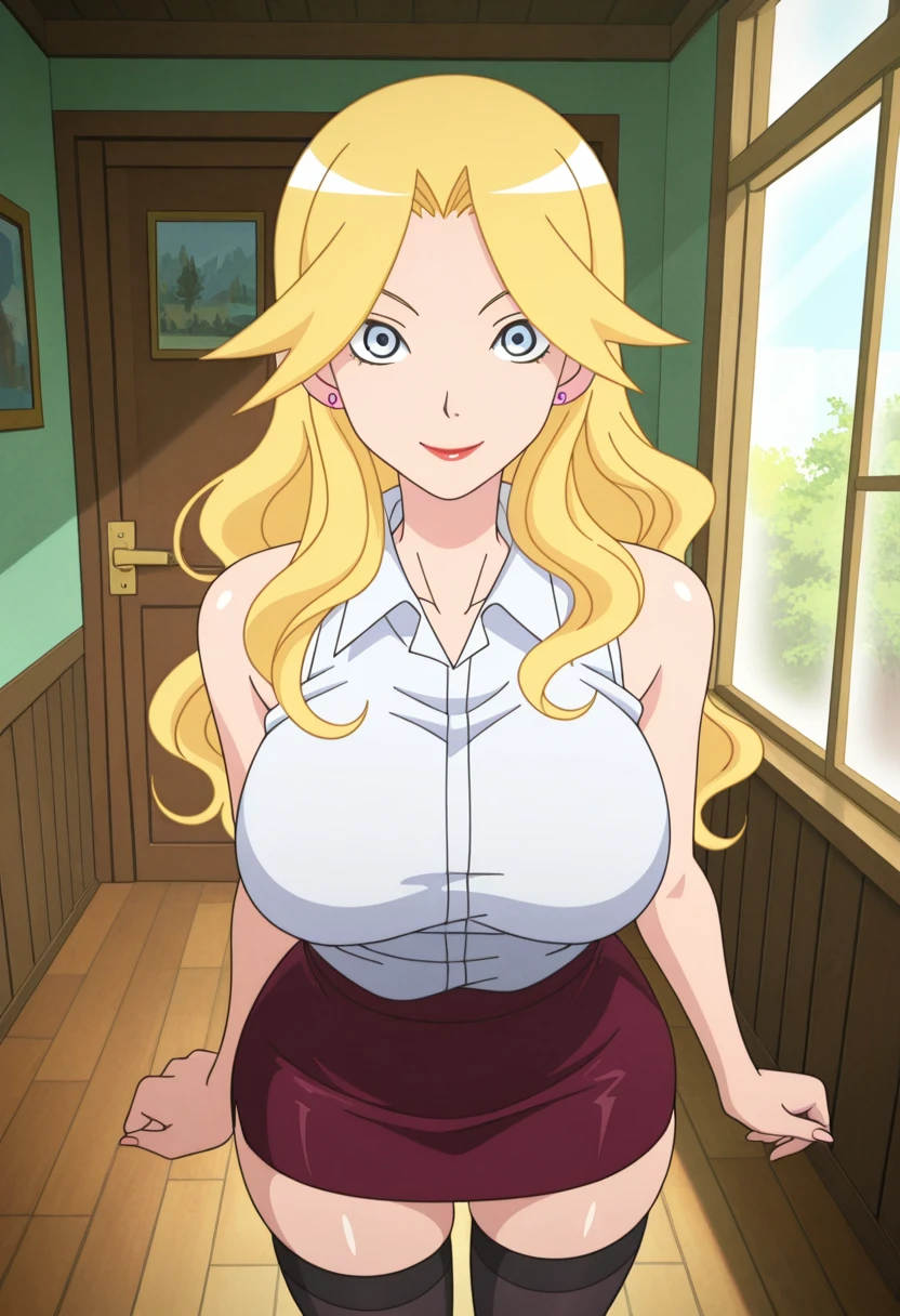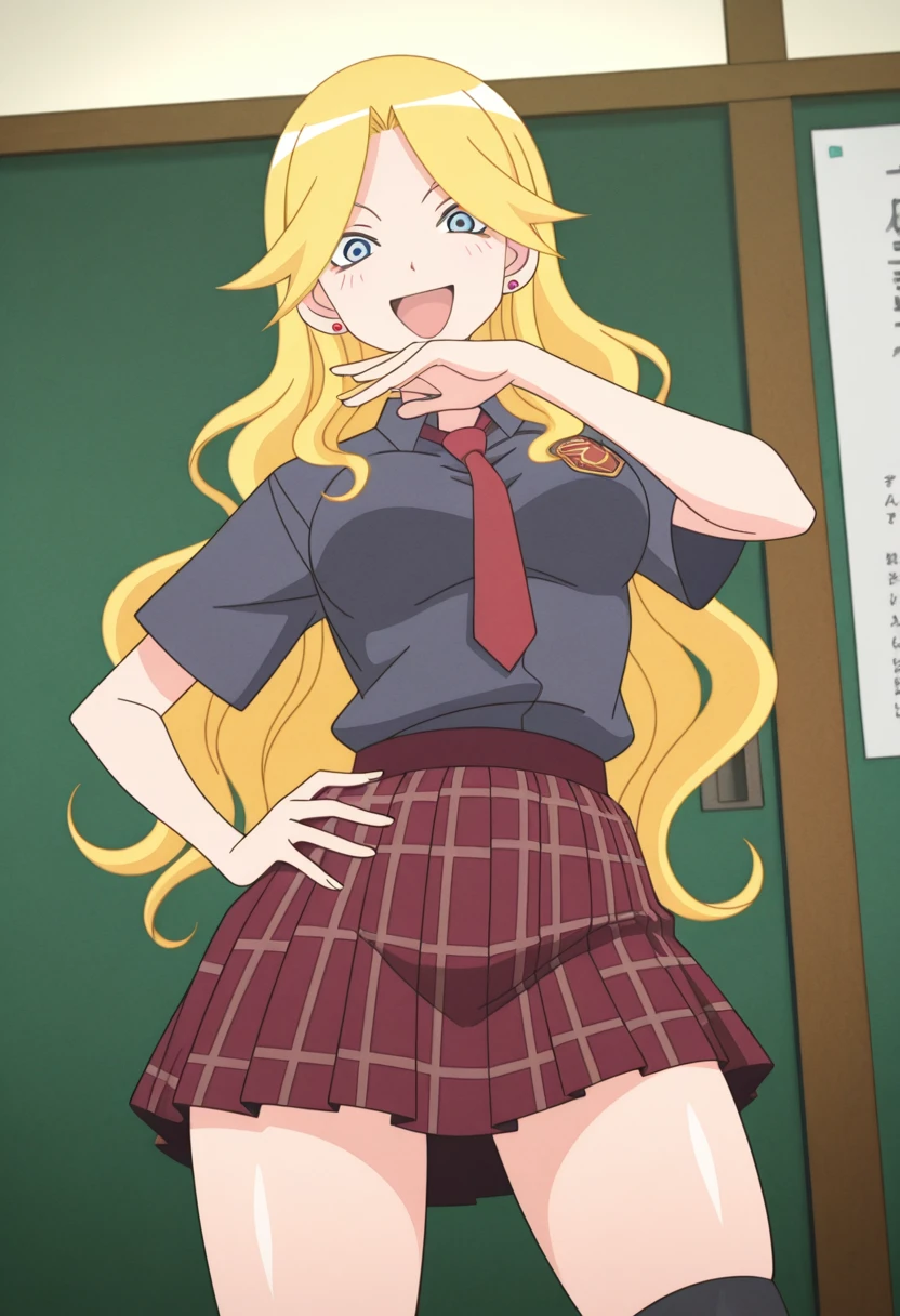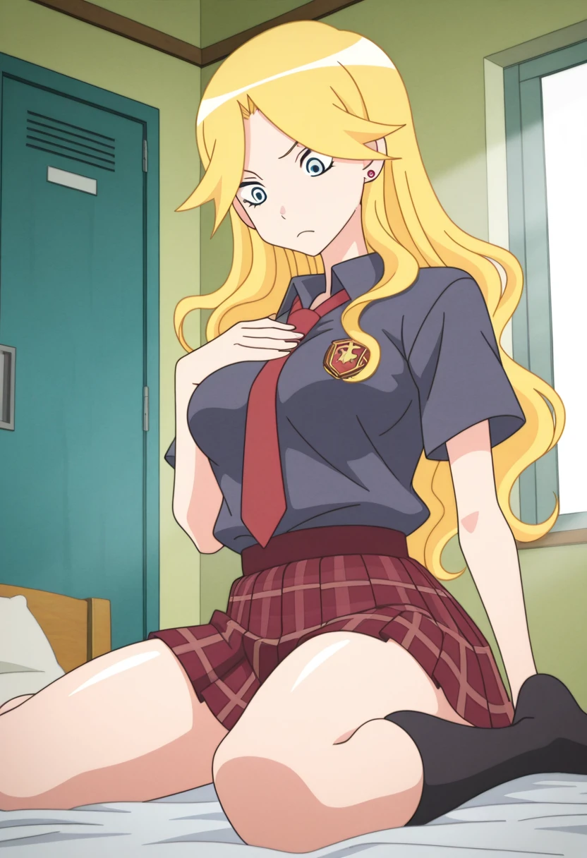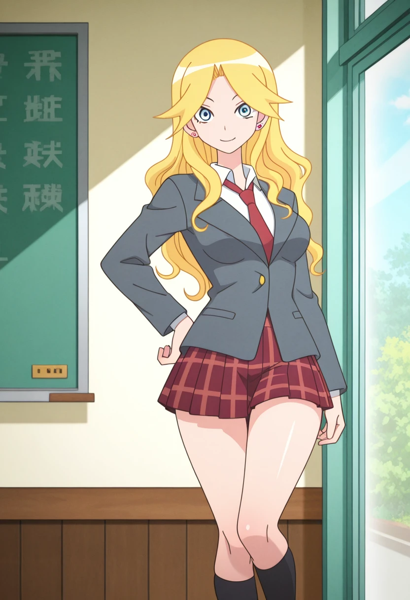 kaereww, blue eyes, blonde hair, long hair, wavy hair, earrings, medium breasts,