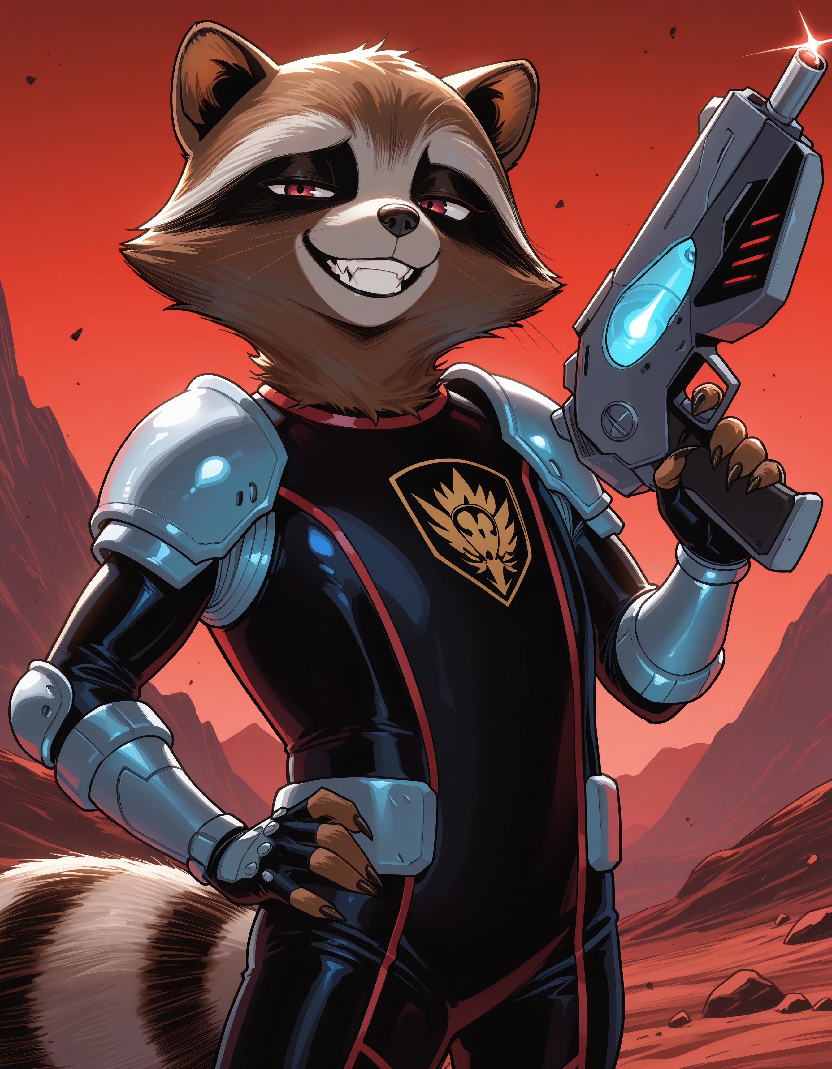 This model is part of a bigger Rocket Raccoon collection I'm slowly putting together. This one is based on the Guardians of the Galaxy comics that came out between 2013 - 2015, written by Brian Michael Bendis (hence the name, I didn't know what else to call the lora tbh).