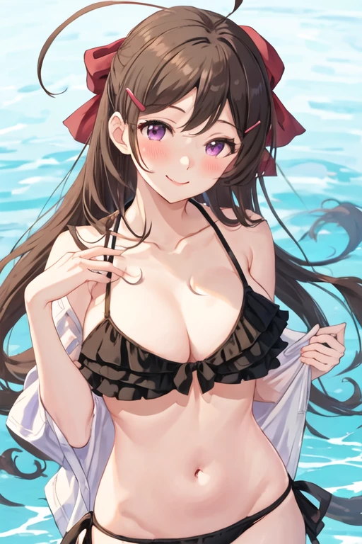 The trigger word is mamiya_kantaicollection, and the recommended tags are best quality, masterpiece, highres, solo, {mamiya_kantaicollection:1.15}, brown_hair, long_hair, ribbon, hair_ornament, hairclip, hair_ribbon, ahoge, breasts, large_breasts, smile, blush, red_eyes, purple_eyes.