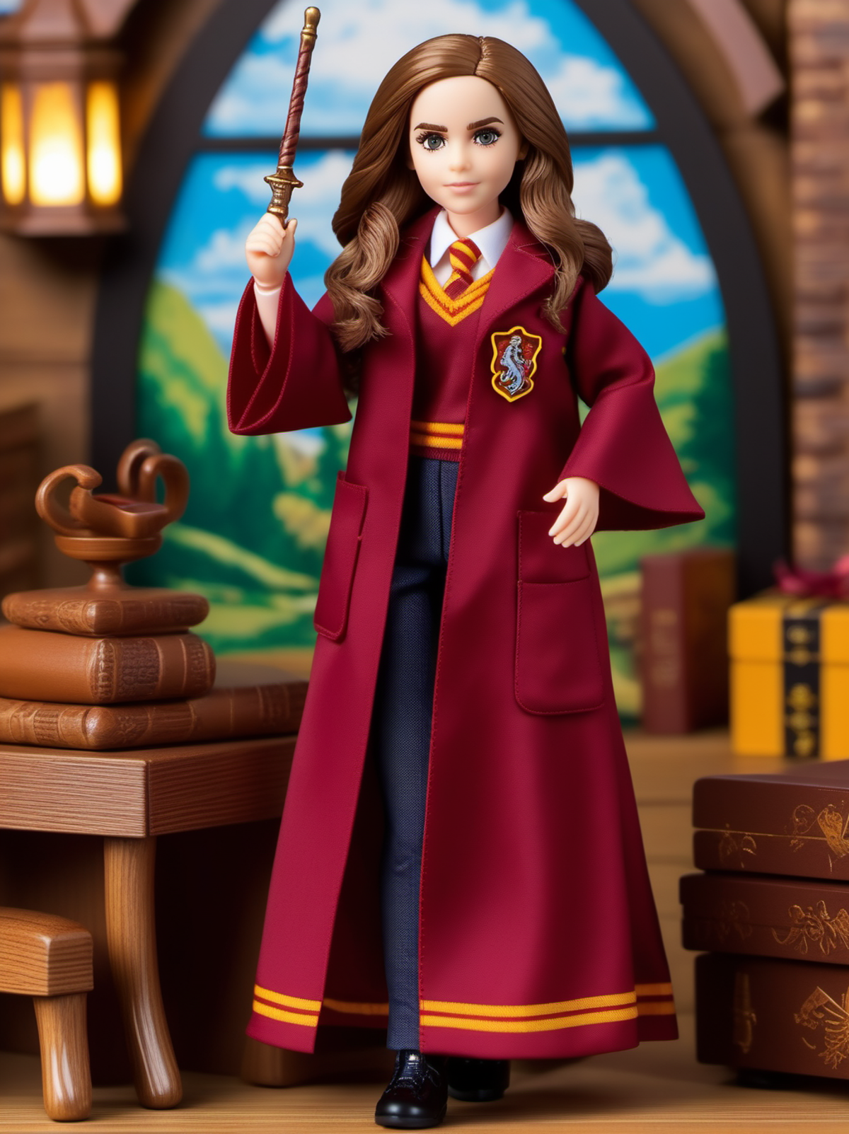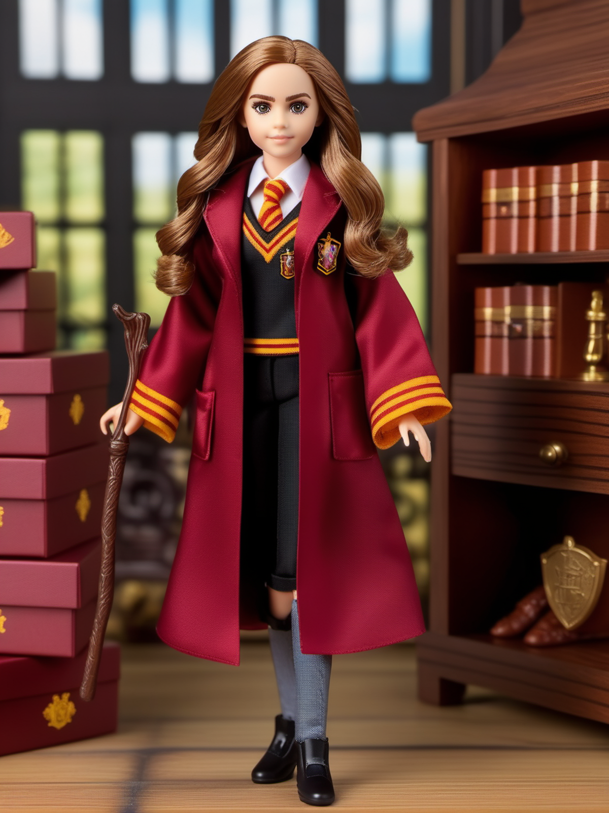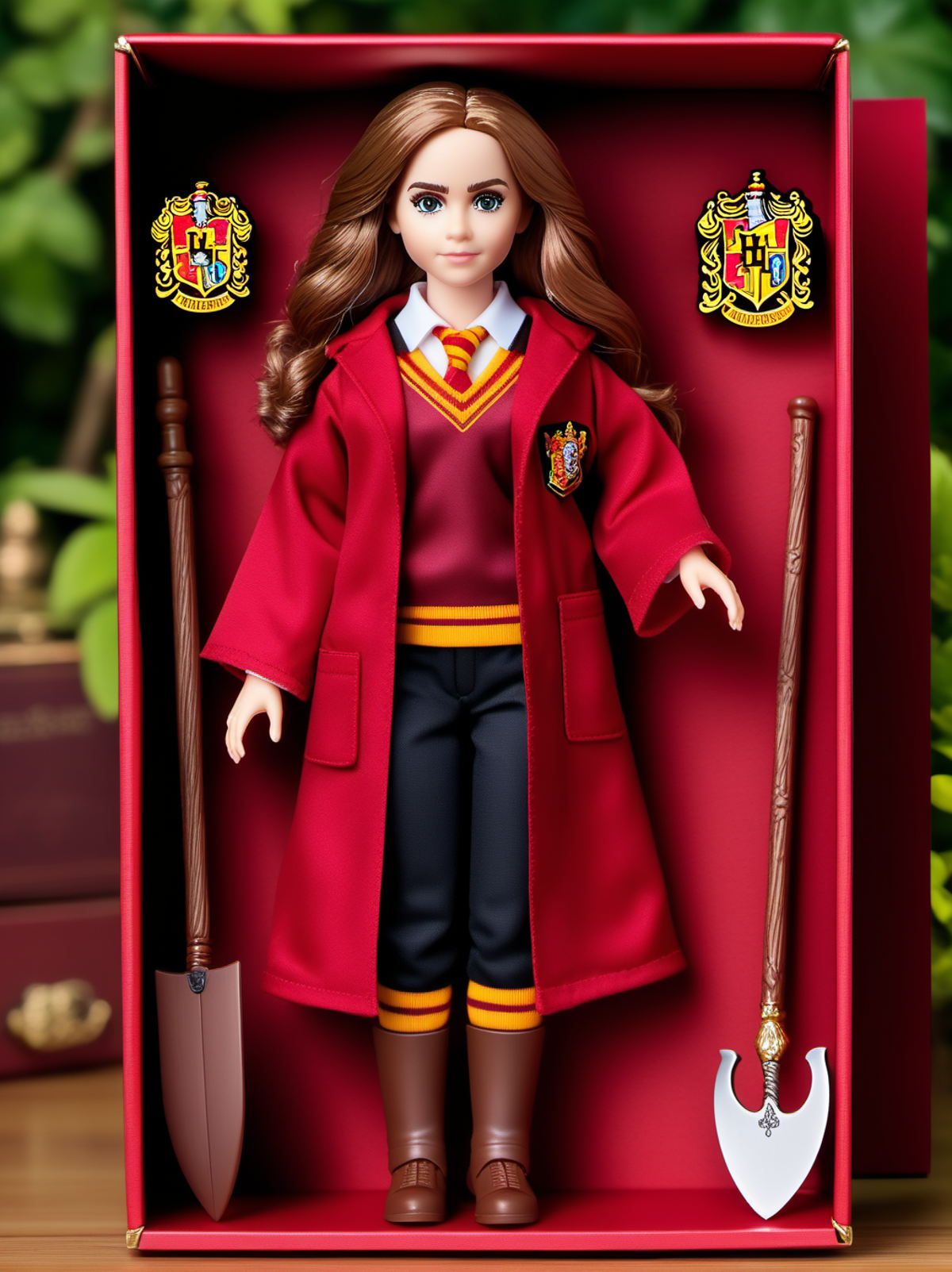 (best quality), (masterpiece), (detailed), (realistic), Dappled Light, analog style, gift box, playset, in a box, full body, toy playset pack, in a gift box, premium playset toy box,no humans, inboxDollPlaySetQuiron style, abs, barbie (Rey (The Last Jedi): In her attire from The Last Jedi, Rey wears a more advanced and Jedi-like outfit. Her tunic is a muted gray with long sleeves and a high neckline. The tunic is belted with a brown leather belt, emphasizing her waistline. She wears fitted black pants and knee-high black boots with subtle designs. Rey's beige-colored outer cloak, made of textured fabric, falls to ankle-length and is fastened with a decorative clasp. Additionally, she carries a lightsaber, a powerful weapon in the Star Wars universe, indicating her connection to the Force), <lyco:SDXL1.0_quiron_inboxDollPlaySet_v5.1_lycoris:0.97>