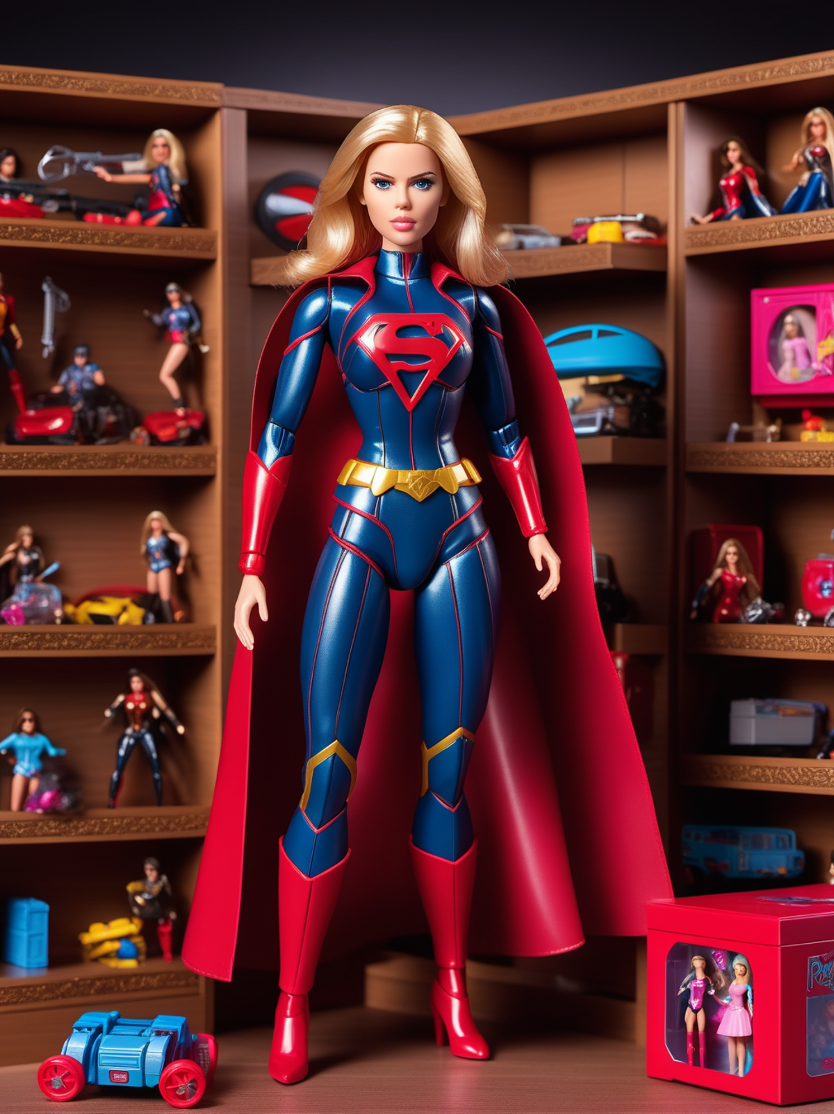 (masterpiece, best quality, ultra detailed, absurdres), diorama, closed pack premium toy box, inboxDollPlaySetQuiron style, the superheoine supergirl, (plastic toy playset pack:1.3), inside gift box, <lyco:SDXL1.0_quiron_inboxDollPlaySet_v5.1_lycoris:0.97>