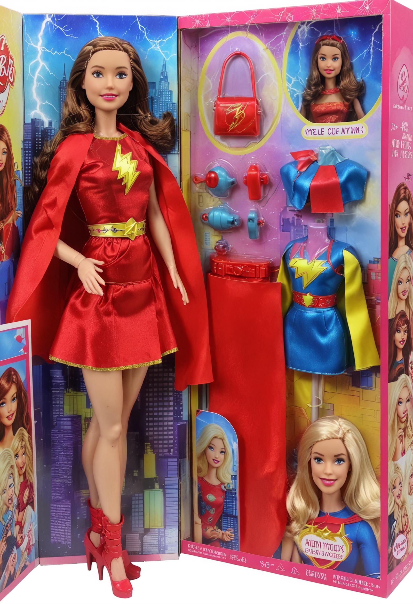 📝🌟 Trigger: inboxDollPlaySetQuiron style, Barbie, gift box, no humans, playset, in a box, full body, cover page, toy, character print, doll, toy playset pack, in a gift box,