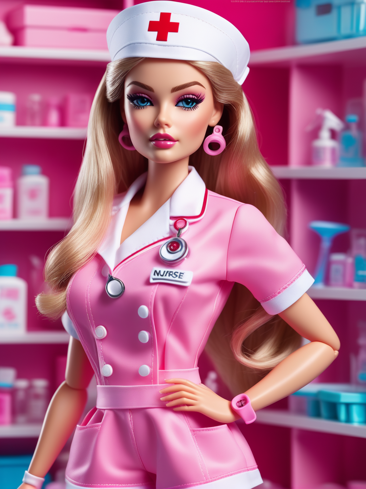 Ultra high resolution, high resolution, (masterpiece), hyper-detail, 1girl, inboxDollPlaySetQuiron style, full body, no humans, doll, toy, barbie, in a gift box, character print, blonde hair, middle length hair, light blue eyes, sprinkles, barbie color theme, beautiful female barbie, full lips, parted_lips, heavy make-up, smoky eyes, detailed eyes, pretty face,3DMM,inboxDollPlaySetQuiron style,(margot robbie), <lyco:SDXL1.0_quiron_inboxDollPlaySet_v5.1_lycoris:0.97>