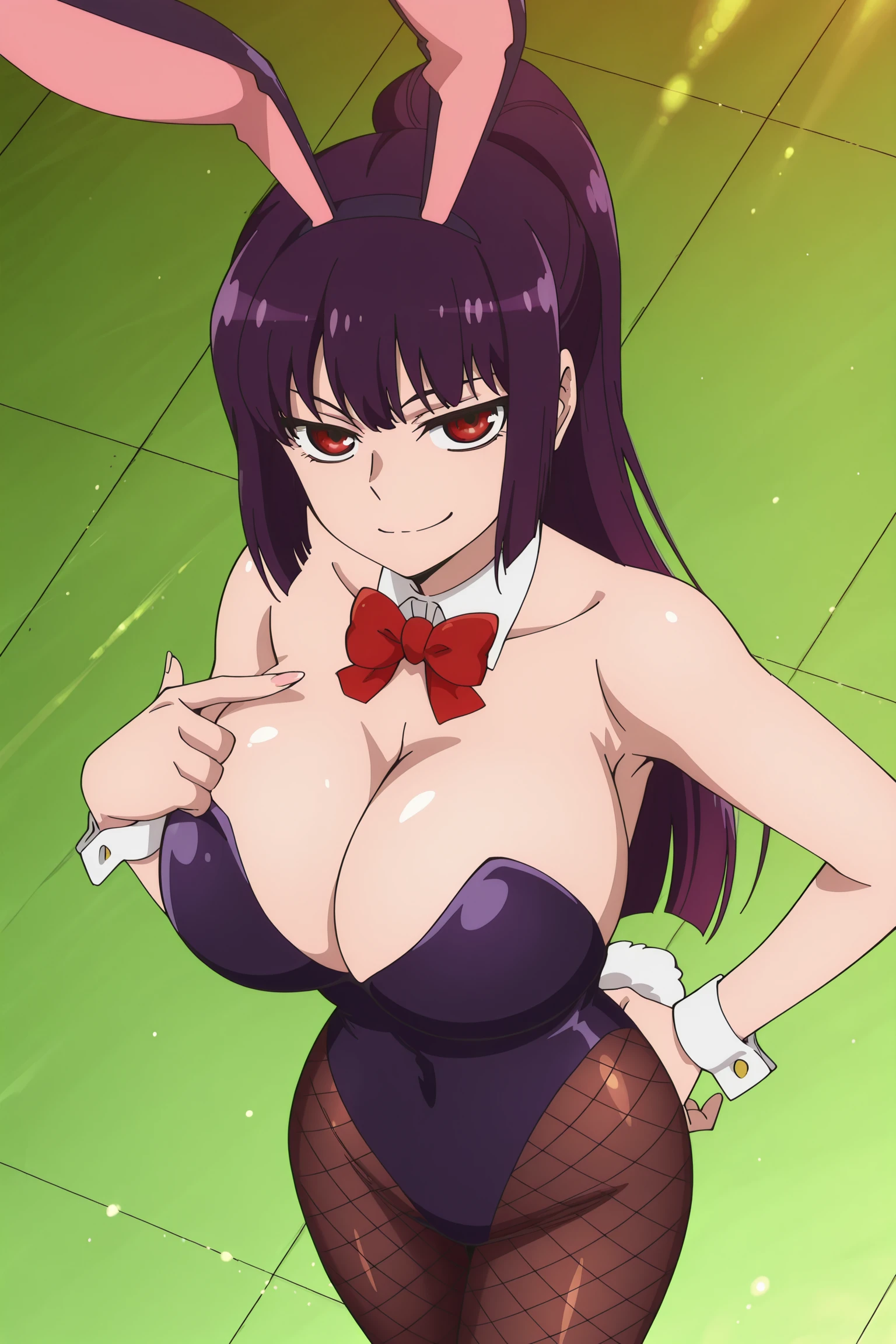S&na b0nnysuit, suit, rabbit ears, cleavage, detached collar, bow, fishnet pantyhose, rabbit tail