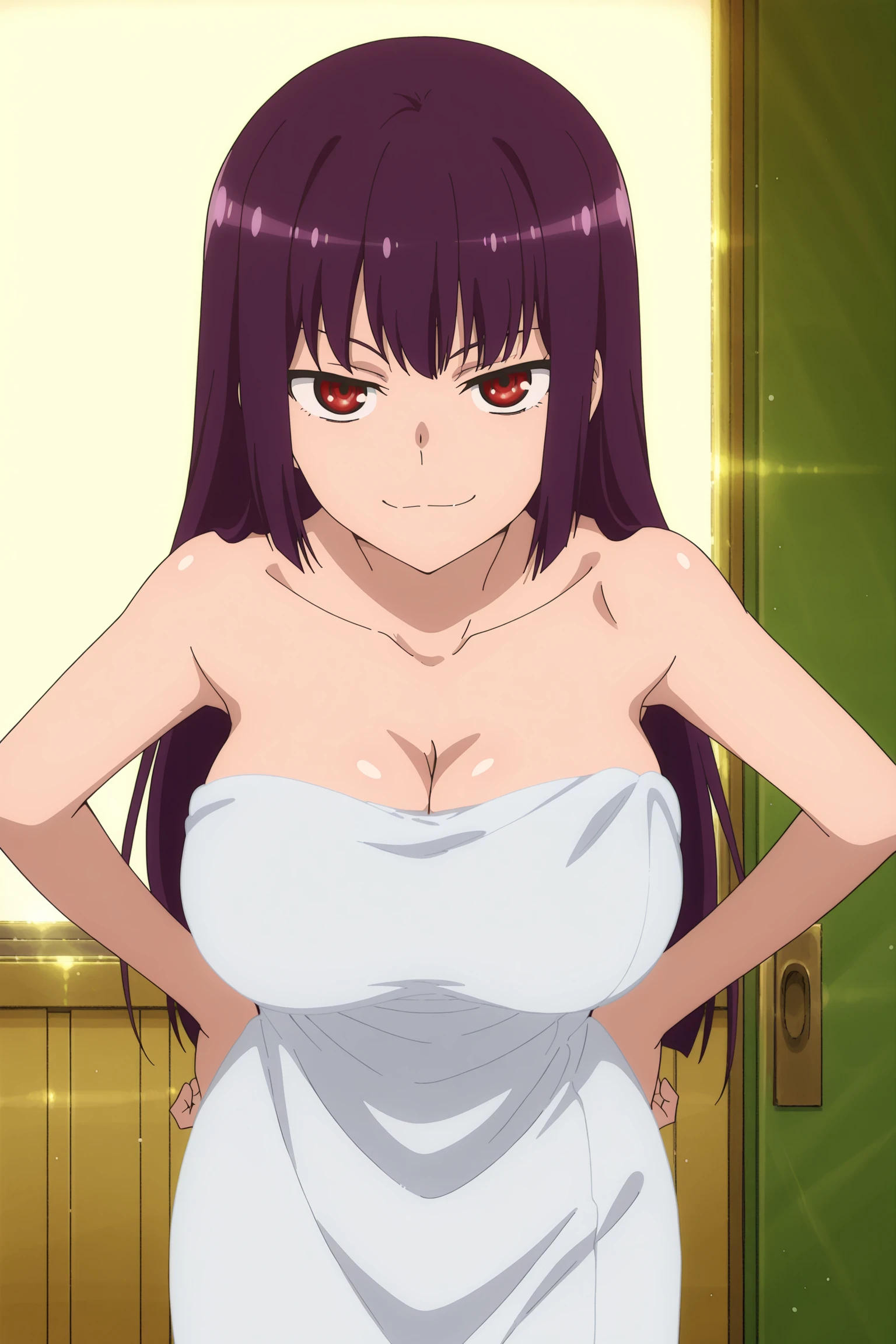S&na Sunomiy&,1girl, solo, black hair, purple hair, long hair, bangs, red eyes,
