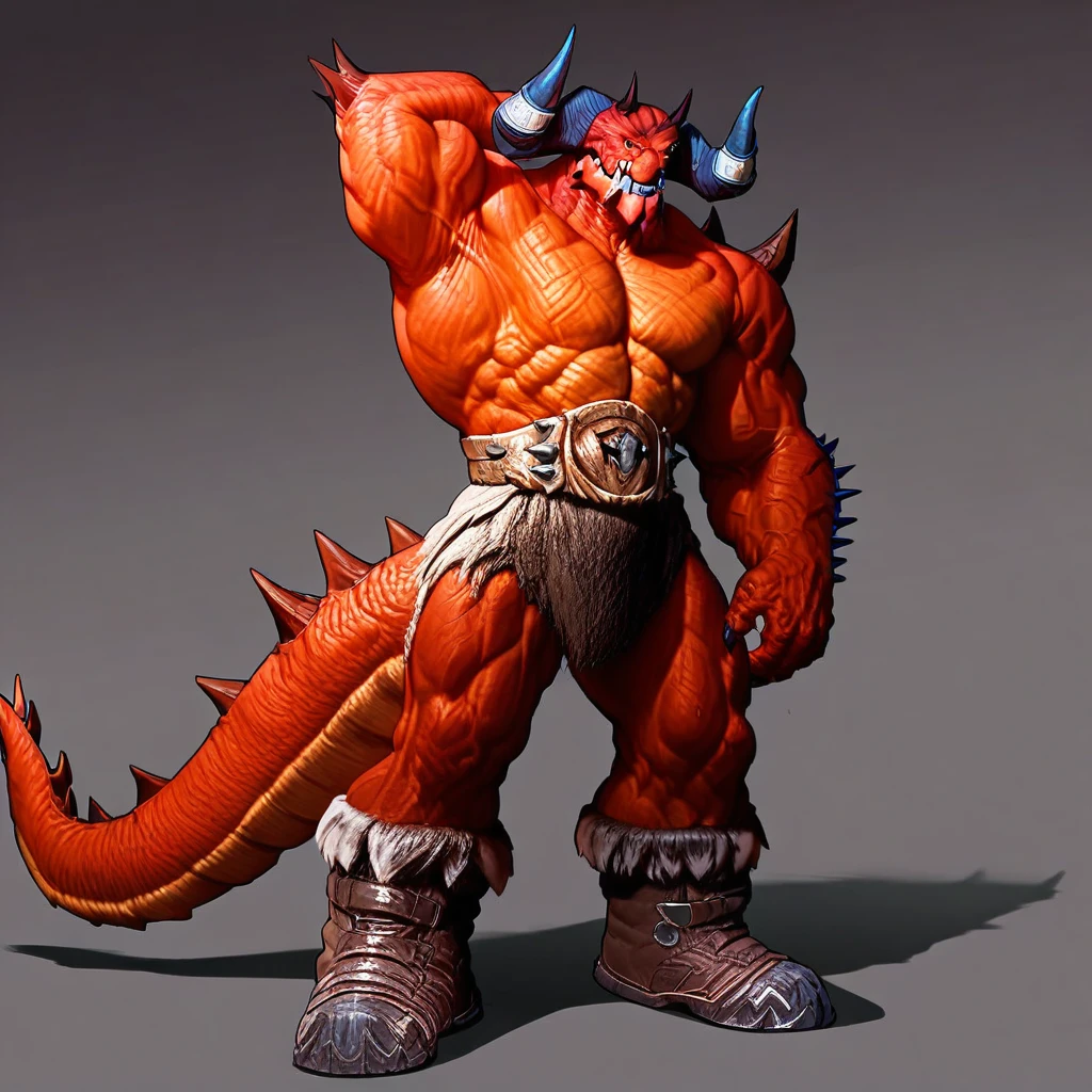 Chaor, Monster, Muscular, Red skin, Sharp teeth, Big horns, Tail, spikes,