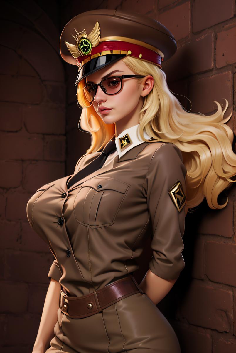 women, blonde_hair, glasses, uniform, hat