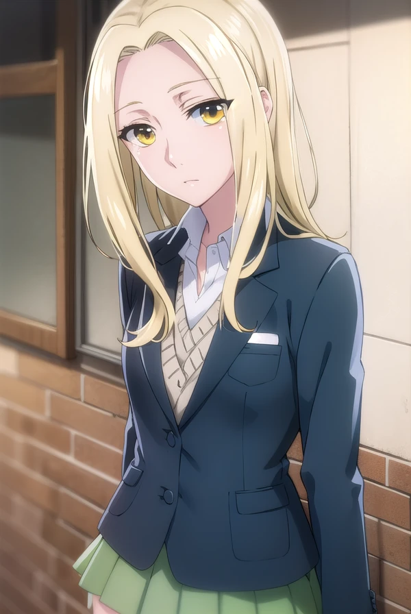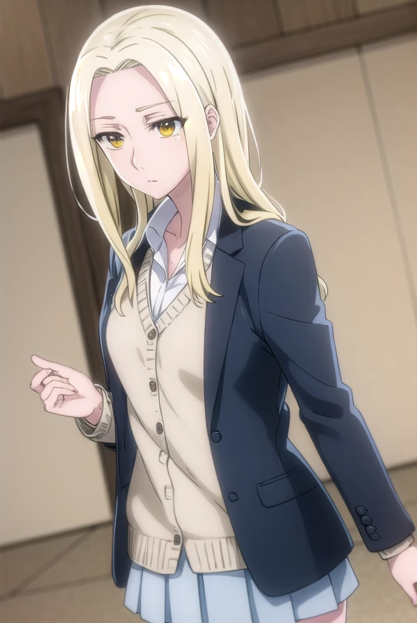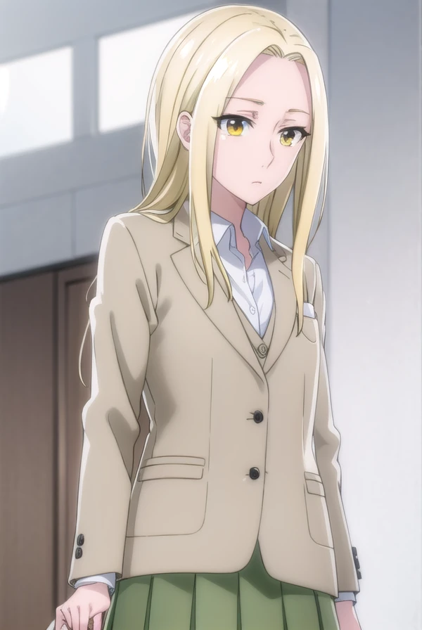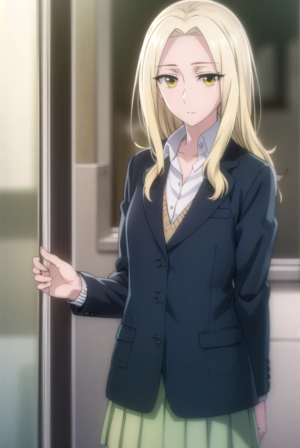 rio amakusa, long hair, blonde hair, (yellow eyes:1.2), (forehead:1.2),
