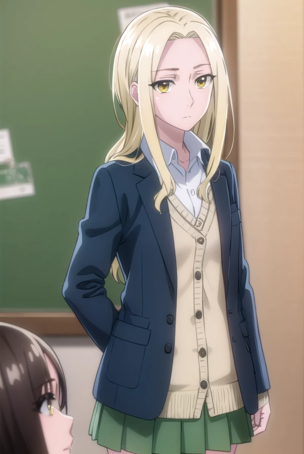 skirt, shirt, long sleeves, school uniform, jacket, white shirt, pleated skirt, socks, miniskirt, blazer, cardigan, green skirt,