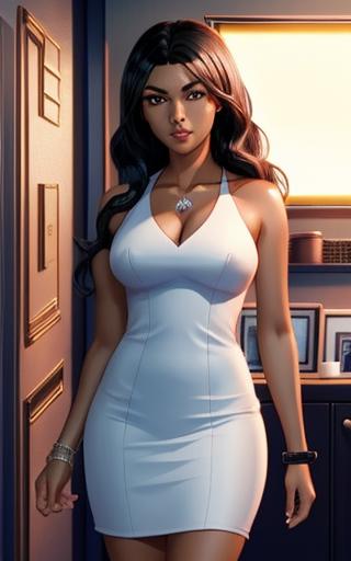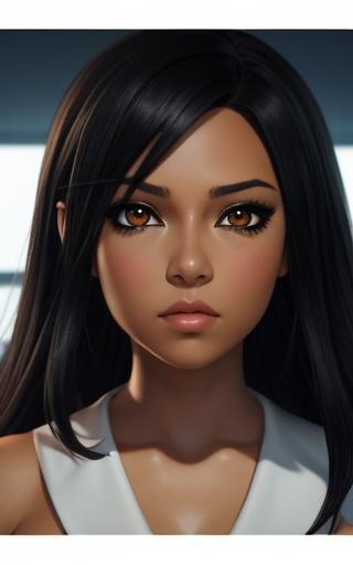 a woman with black hair and hazel eyes